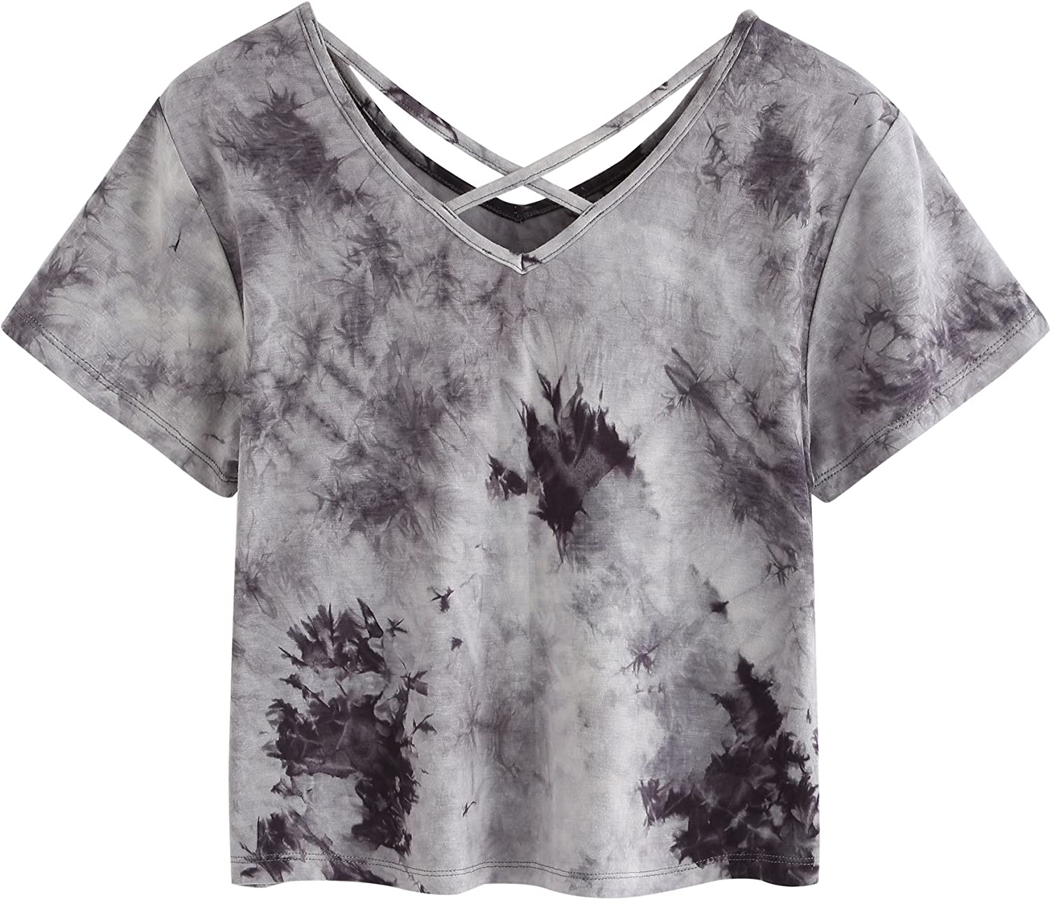 SweatyRocks Women's Tie Dye Criss Cross Back Short Sleeve Crop Summer T Shirt