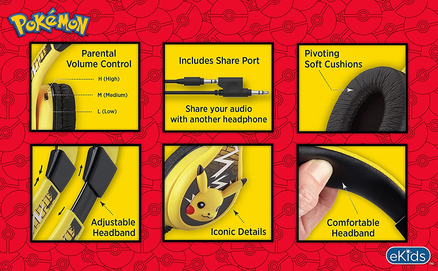 • Pokemon Design: Over ear headphones feature cool graphics inspired by the one and only Pikachu. Looks great on any fan of Pokemon!