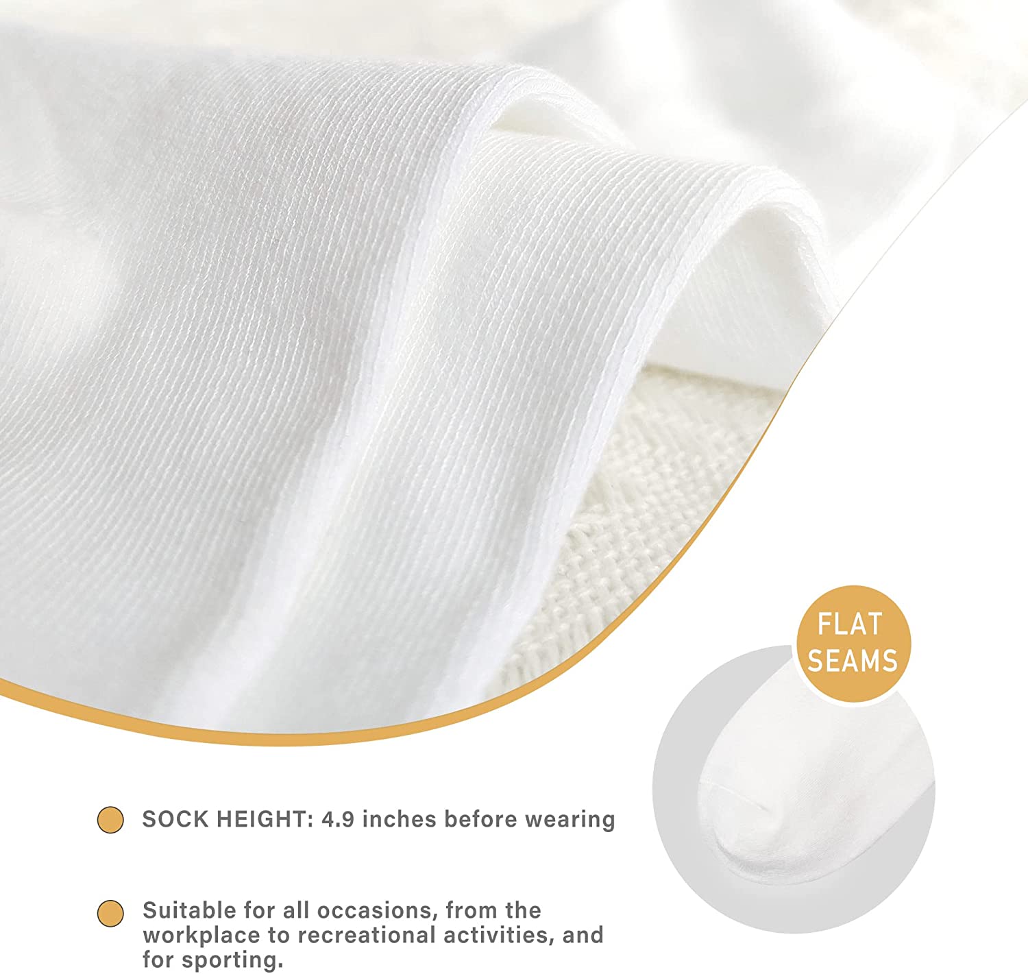 • Made from 90% yarn woven from natural bamboo fibers, the toe seams are flat and well-made. They are elastic to fits a wide range of foot sizes perfectly. The fabric is lightweight, breathable, moisture-wicking, and breathable to keep your feet cool.