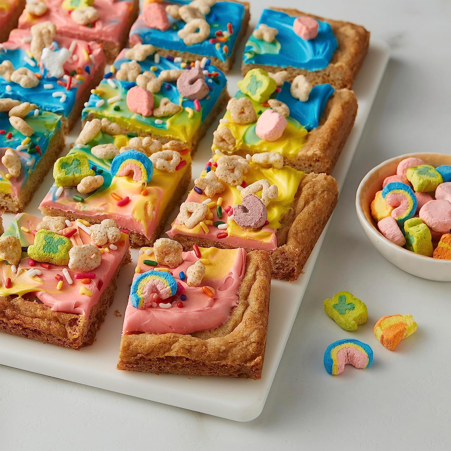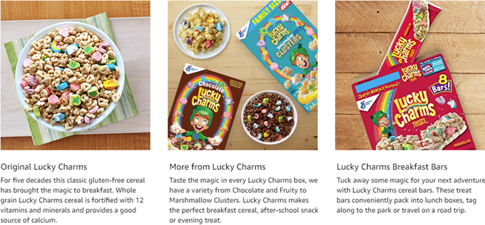 Make a magical start to the day with General Mills Lucky Charms Gluten Free Cereal with Marshmallows. A crunchy bowl of toasted oat cereal and Lucky's magical marshmallows brings smiles to breakfast time. Pour a bowl with milk for breakfast, or pack a bag of the whole grain cereal with marshmallows for a snack. The toasted oat cereal provides 19 grams of whole grain per serving (at least 48g recommended daily), as well as 12 vitamins and minerals. The kids cereal is also a good source of calcium and vitamin D. This 26.1 ounce cereal box makes breakfast easy. Or think outside of the cereal box. Set up a sundae station with Lucky Charms for ice cream toppings, bake marshmallow cookies with the marshmallows on St Patricks Day, or throw a rainbow birthday party with a tray of homemade unicorn cereal bars for party snacks. Who knows what fun you'll think up when you follow Lucky's trail? Whether you're looking for a kids breakfast