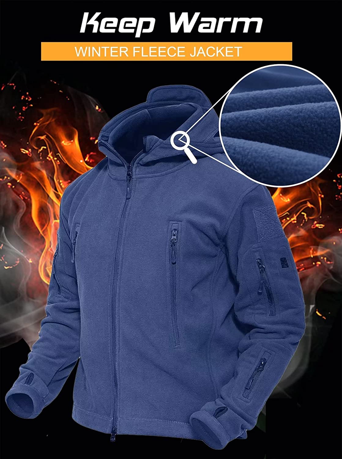 Warm Fleece: Men hooded tactical style jacket with ultra soft warm fleece