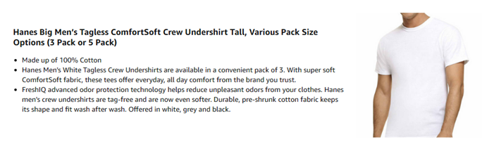 Generous length for a stay-tucked hem^Lay flat collar ^Available in a convenient 3-pack