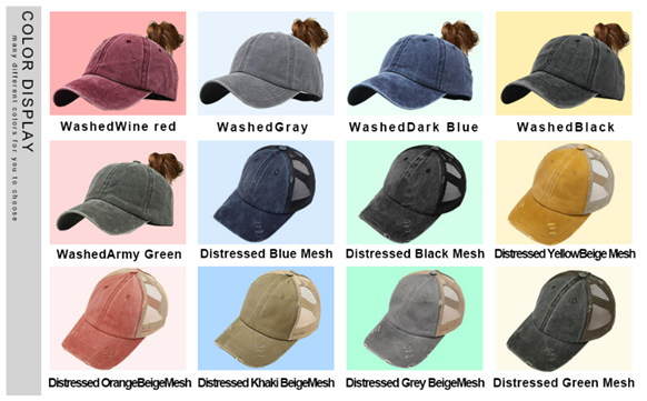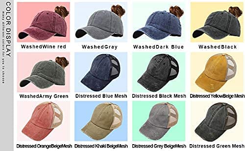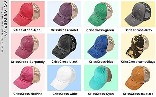 Criss Cross Hat Washed Distressed Baseball Cap Ponytail Hat High Messy Bun Ponycap for Women