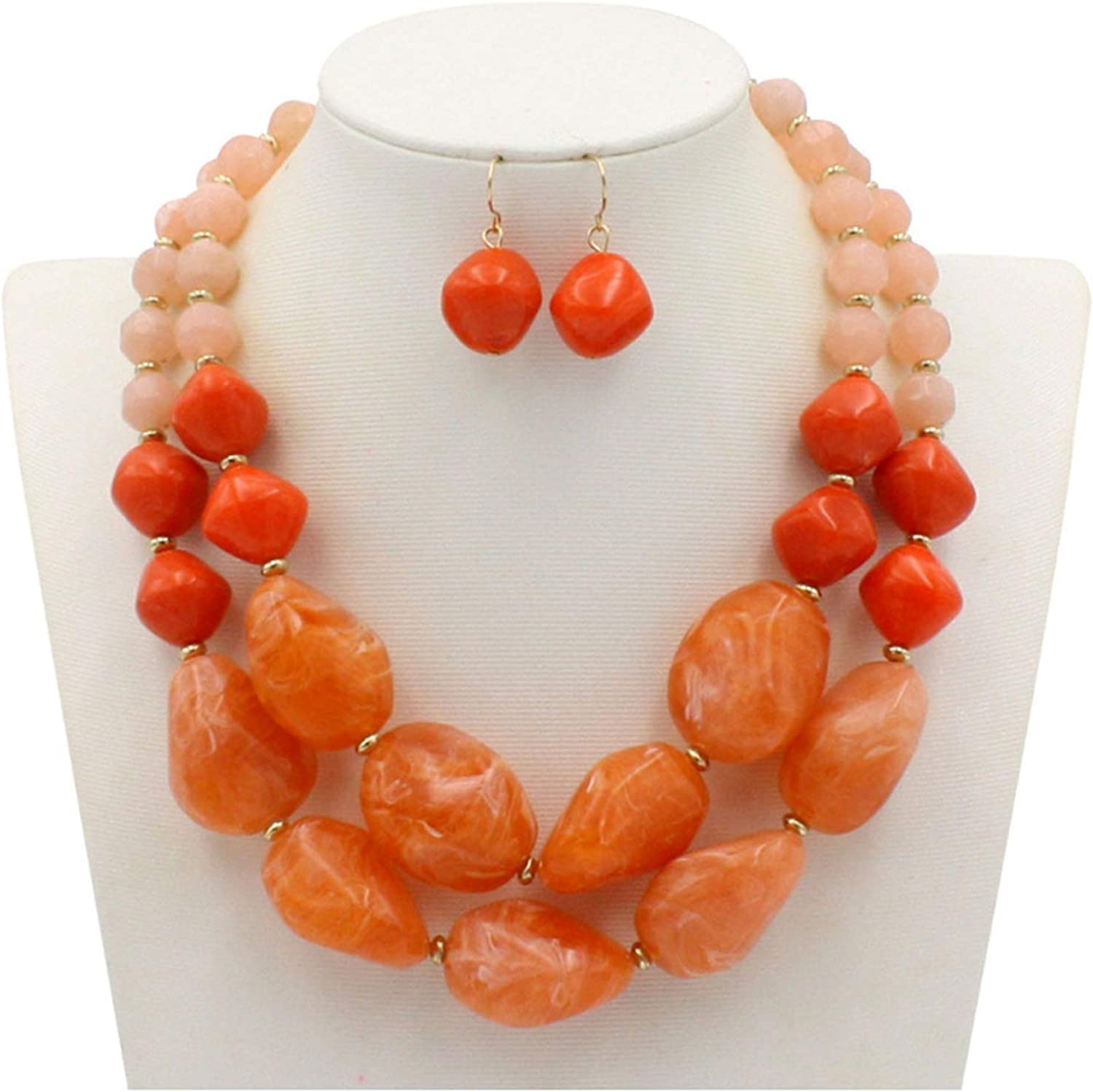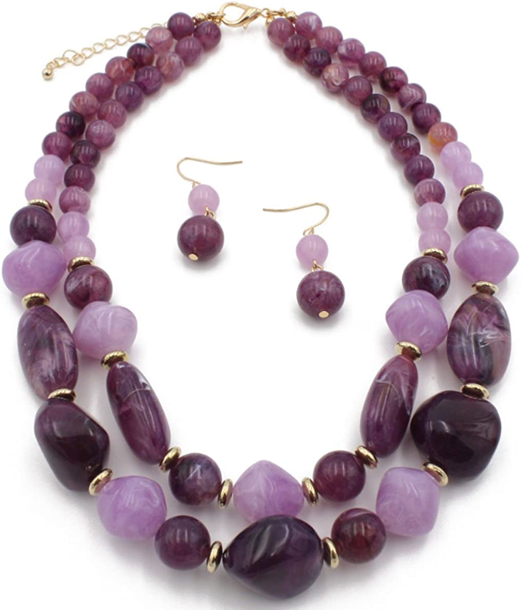 Shineland 2 Layer Jelly Colored Acrylic Handmade Statement Strand Chunky Beaded Fashion Jewelry