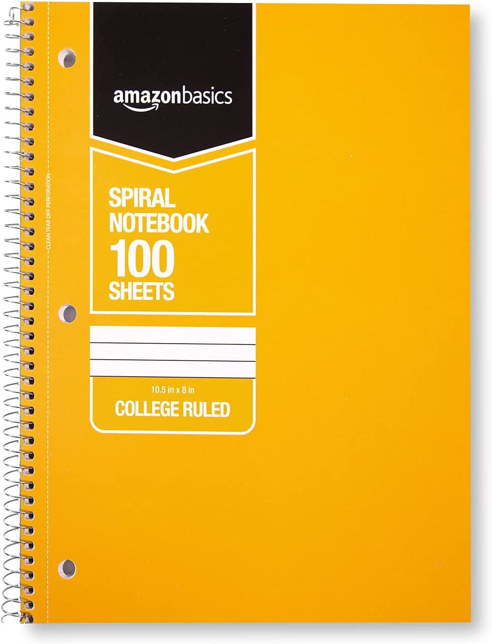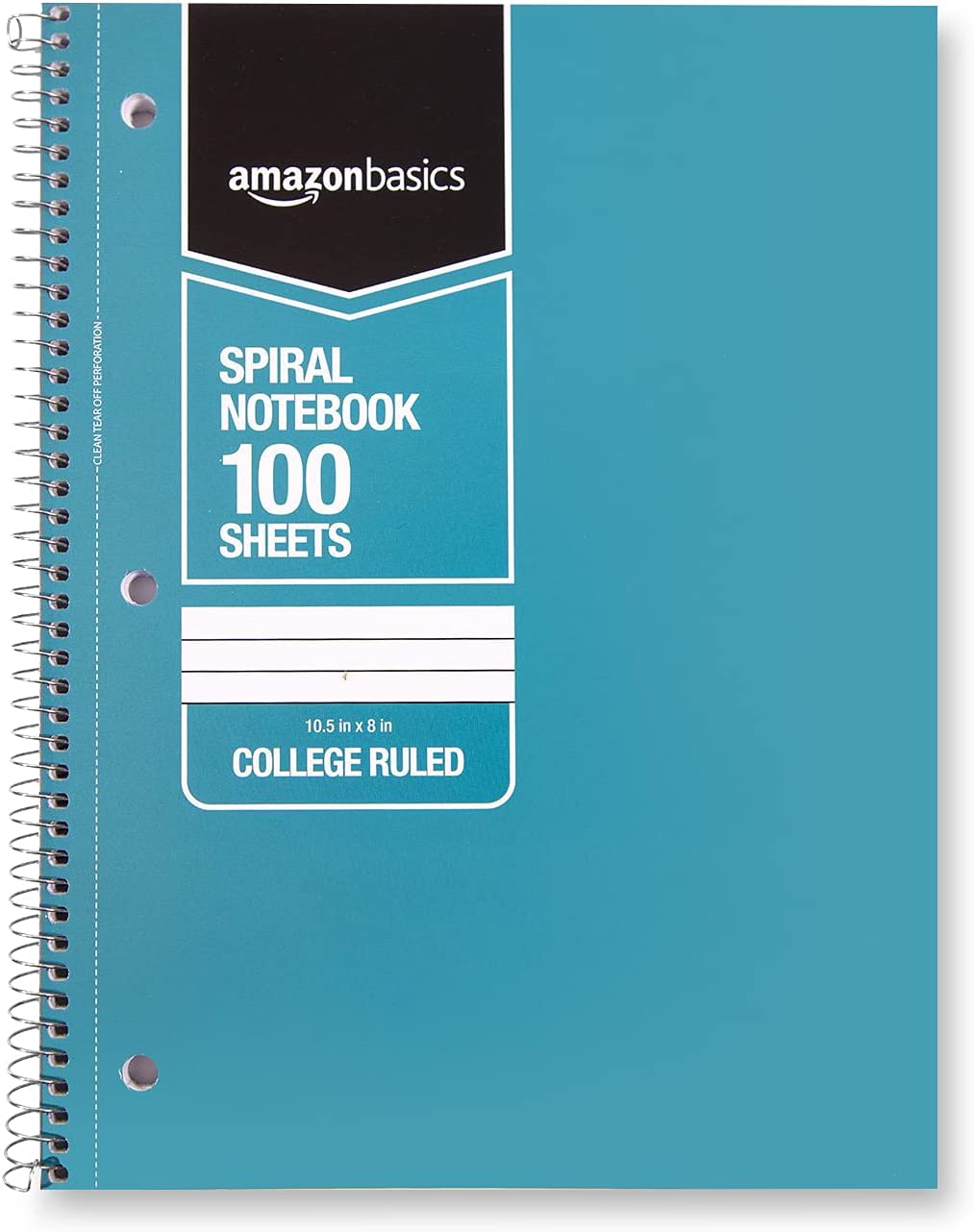 Amazon Basics College Ruled Wirebound Spiral Notebook, 100 Sheets - 5-Pack, Assorted Solid Colors