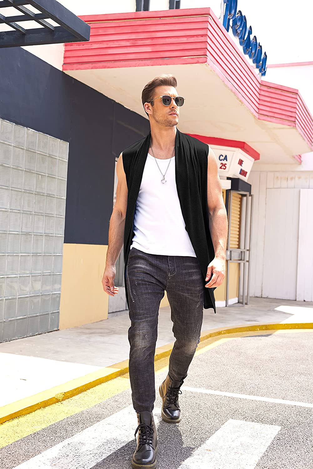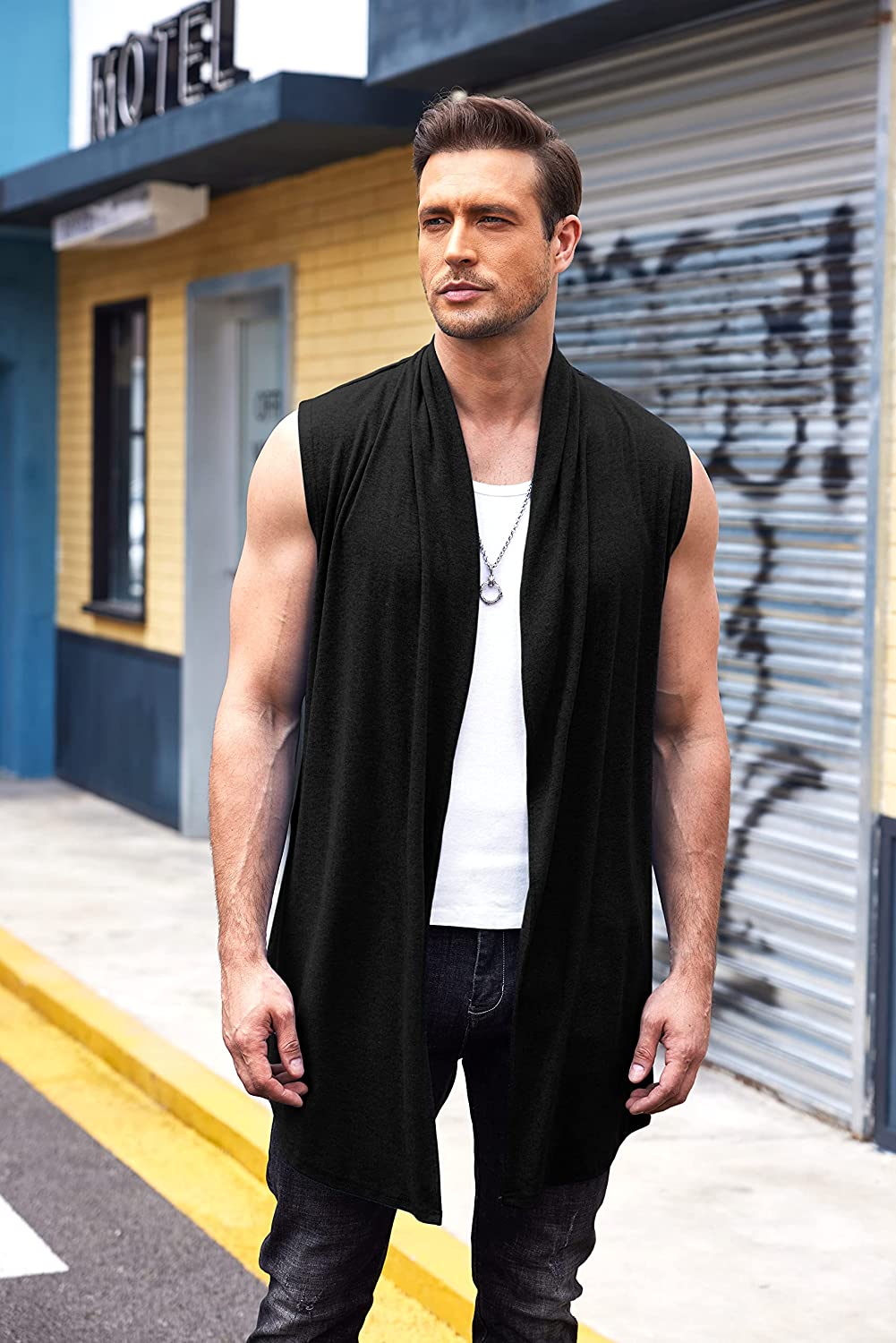 COOFANDY Men's Ruffle Shawl Collar Cardigan Sleeveless Open Front Vest Cape