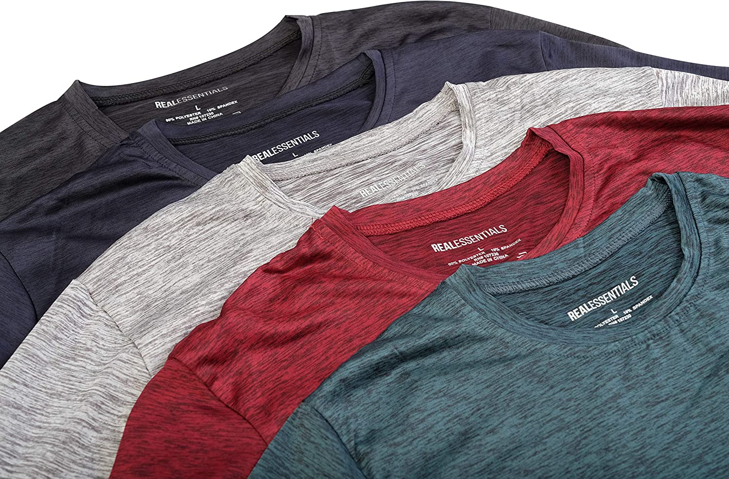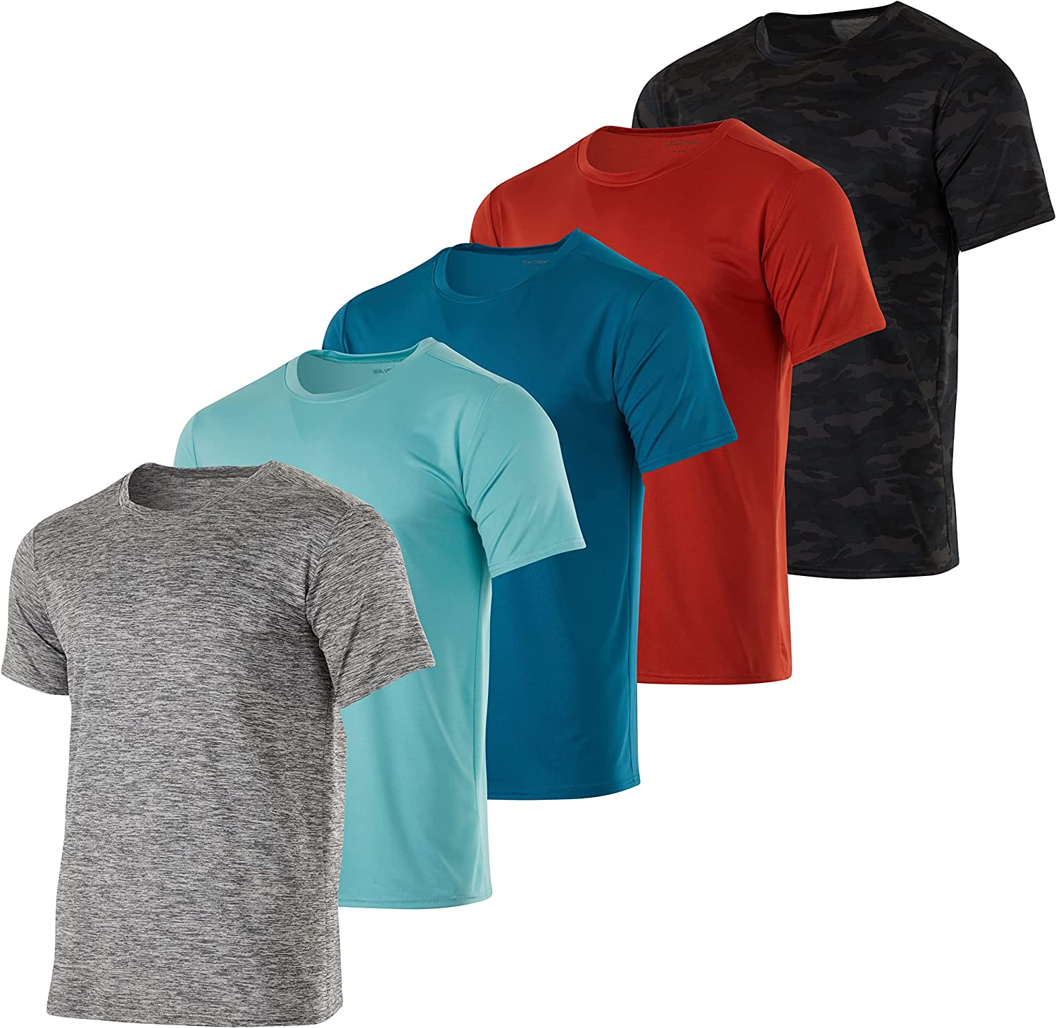 5 Pack: Men’s Dry-Fit Moisture Wicking Active Athletic Performance Crew T-Shirt
