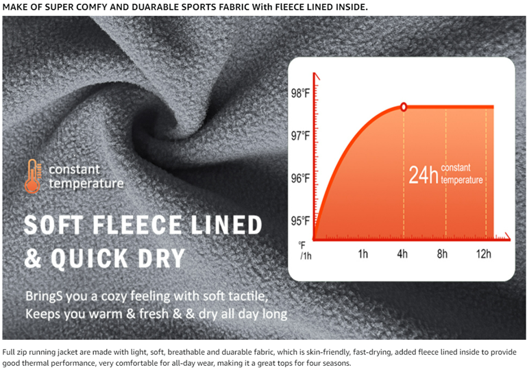 • √Fleece Lined Material: The Zip-up sweatshirt is made of athletic sports fabric with fleece lined added, which offers good thermal performance, quick-drying technology help keep you dry and comfortable all day long. It's good for over a shirts in Fall/spring or warm climates in winter