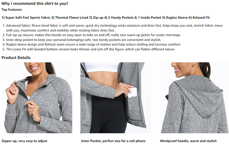 • √3 Pockets: 2 Side Pockets for storing your phone,keys, 1 inside pocket for your valuables. This workout hoodie match perfectly with your running leggings, jeans, shorts, sweatpants, tennis skirt etc.