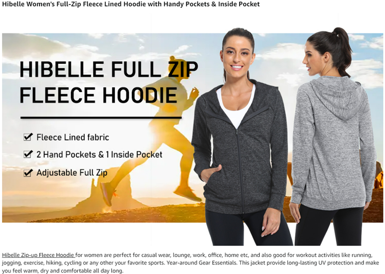 Hibelle Women's Full-Zip Fleece Lined Hoodie Sports Sweatshirts with Handy Pockets & Inside Pocket