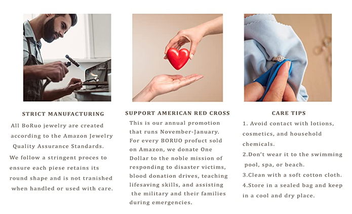 • The BoRuo Advantage: BoRuo is a member of a very small number of brands invited to the Amazon Fine Jewelry category and all our products meet amazon Jewelry Quality Assurance Standards. Only those with brand strength and excellent products are eligible to enter this prestigious level.