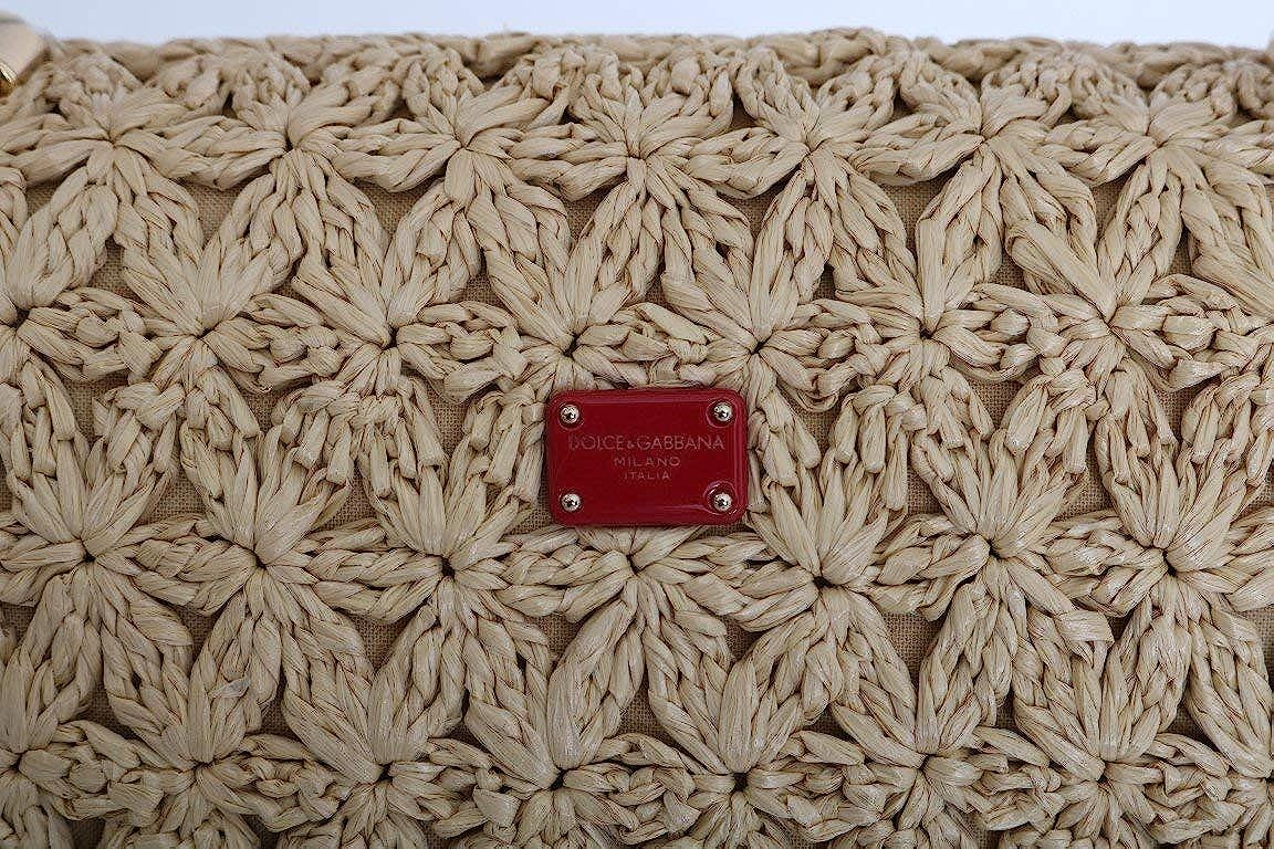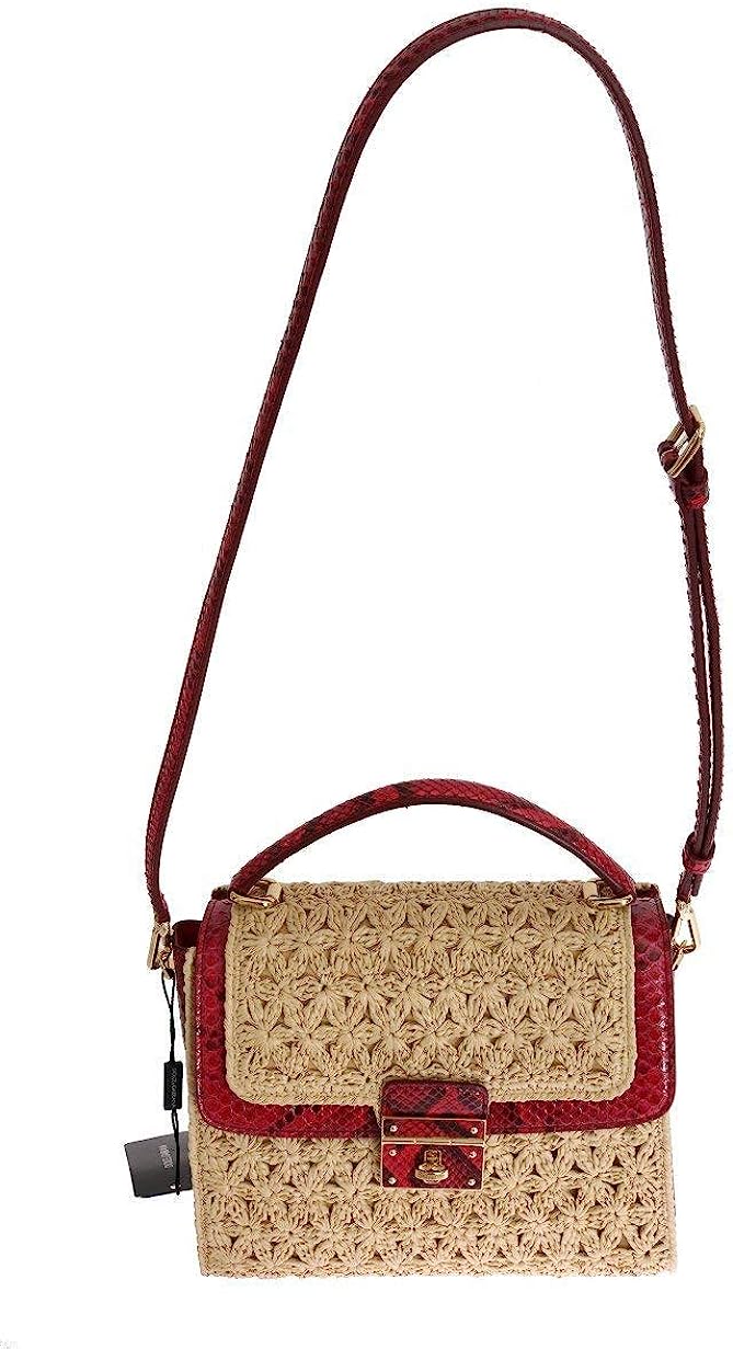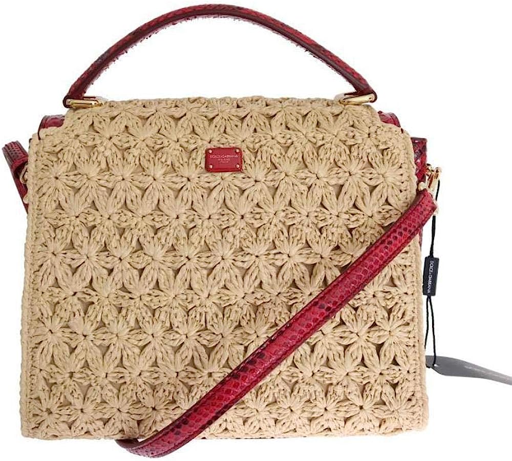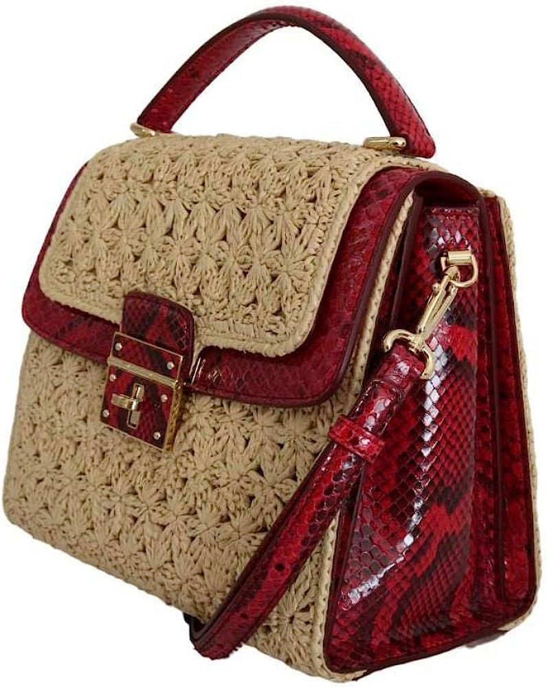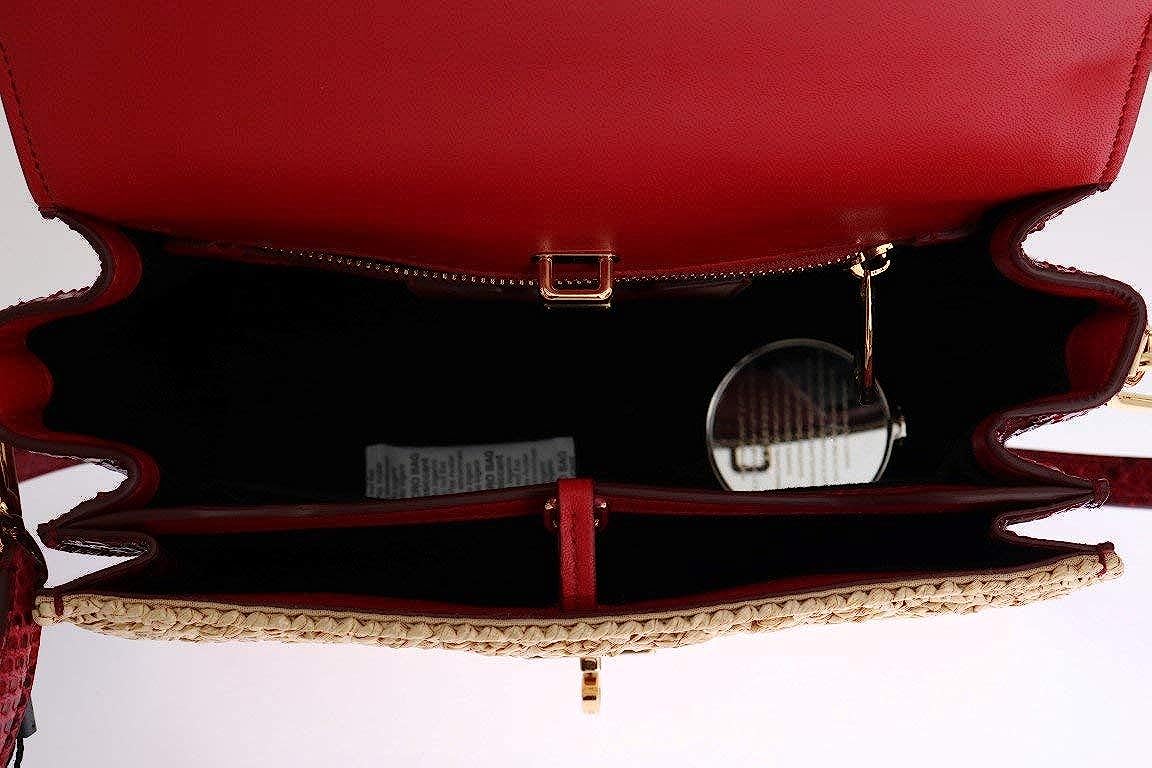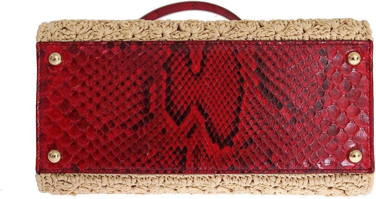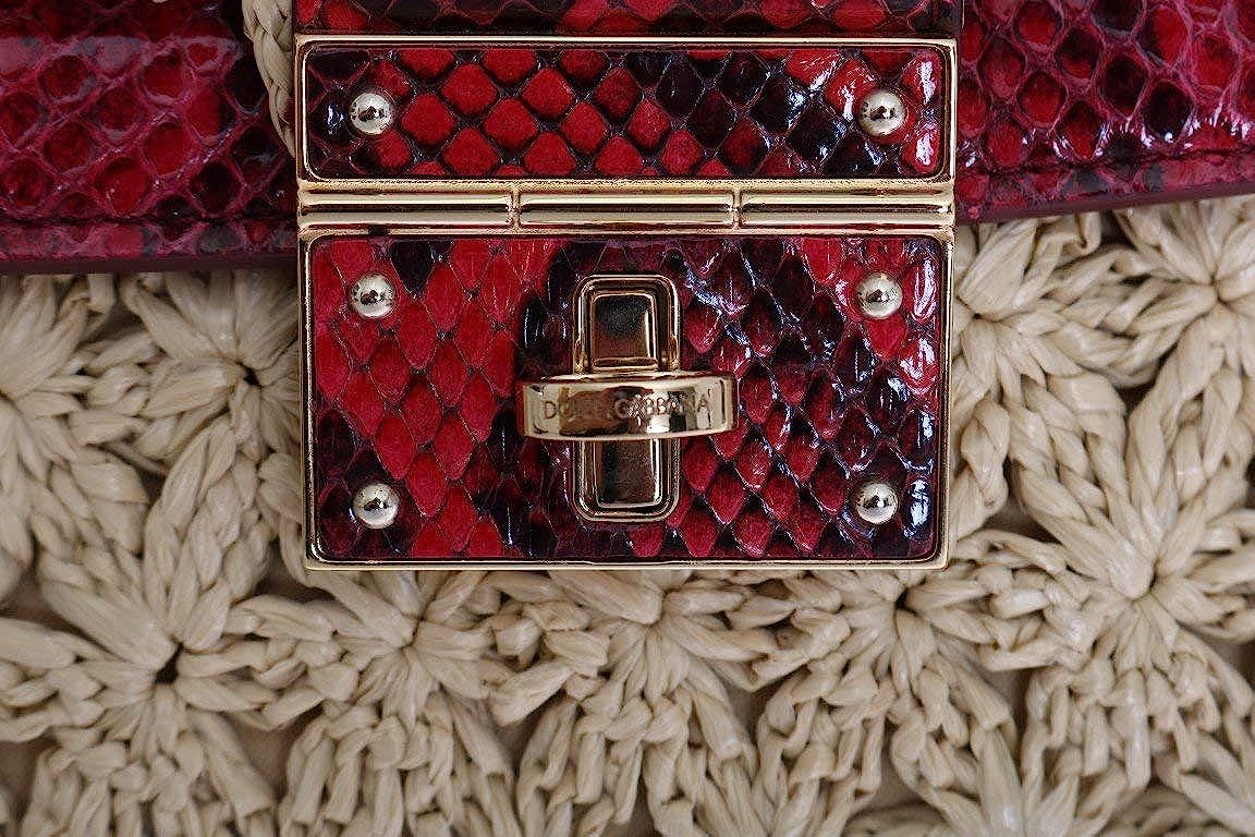 Dolce & Gabbana Beige Straw Greta Red Snakeskin Bag