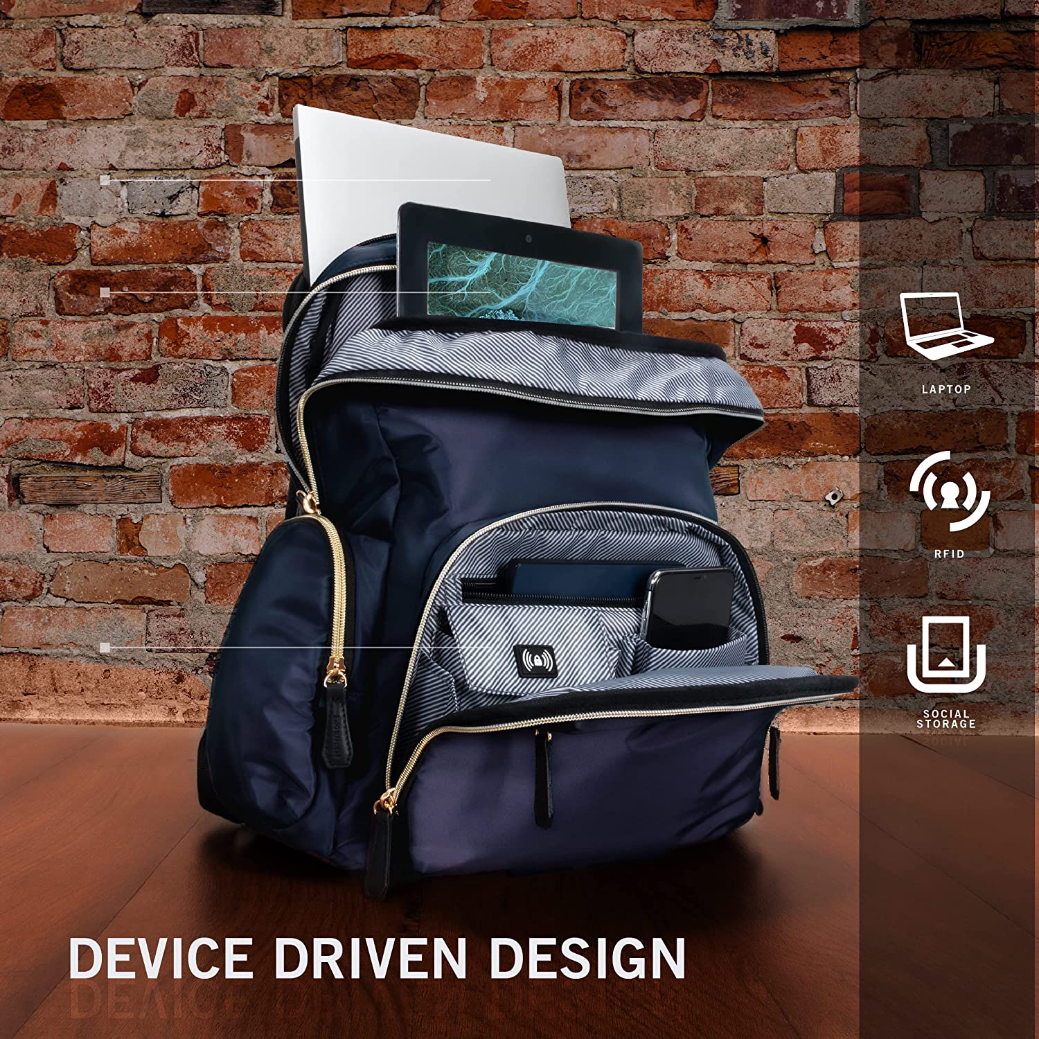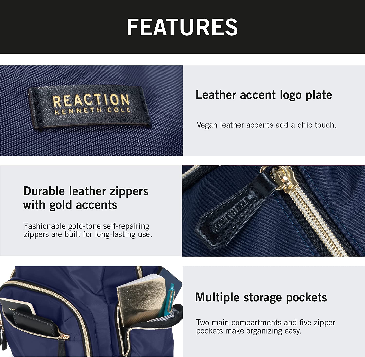 Kenneth Cole REACTION Women's Sophie Backpack Silky Nylon Laptop & Tablet RFID Bookbag, Navy, One Size