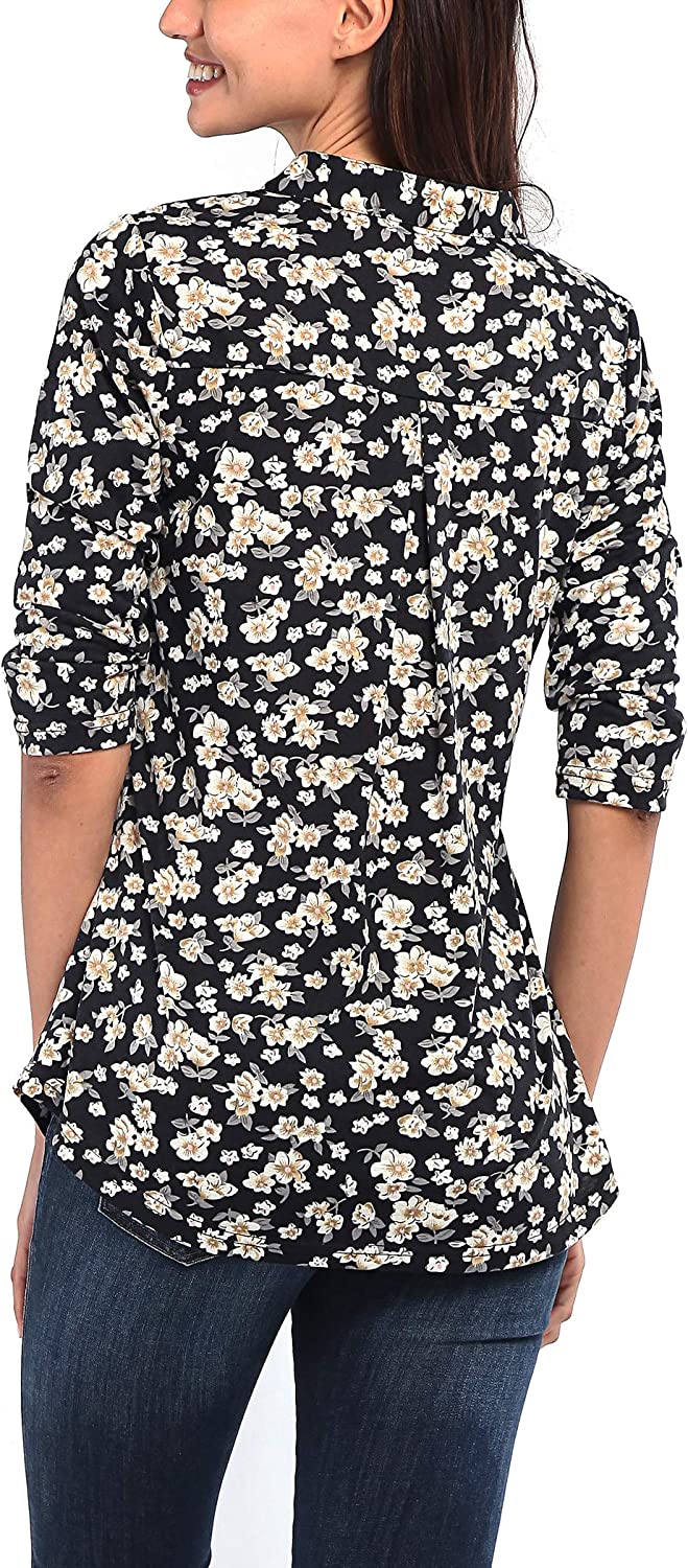 • Floral printed / Plaid shirts/ Striped Blouse for women fashion 2022 new design for coming of Spring Summer Seasons, these womens tops are well made for cool weather, adjustable zipper V neck with cute fake pocket flap fashion design, the pocket for decor only, please be well noted. Zipper up notch V-neck, Cuffed sleeve blouse for elegant lady work casual
