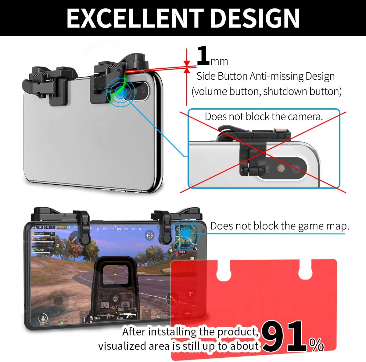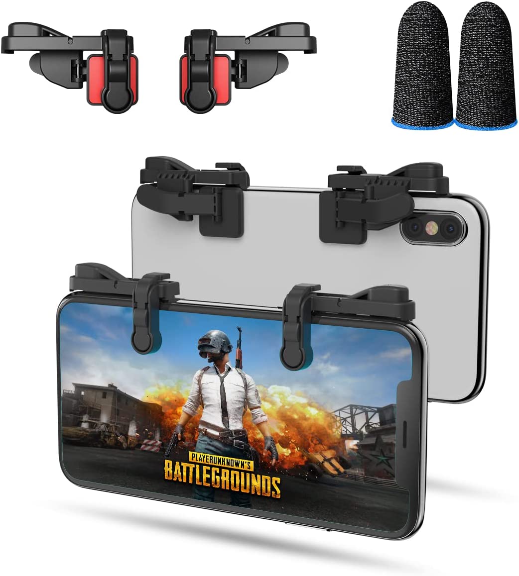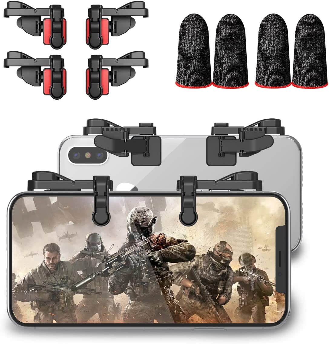 Mobile Game Trigger, Mobile Gaming Controller Compatible with PUBGG/Fortnitee/Call of Duty Mobile, IFYOO Z108 Aim & Fire Triggers for iPhone and Android Phone, 2 Pair with 2 pcs Finger Sleeves Red