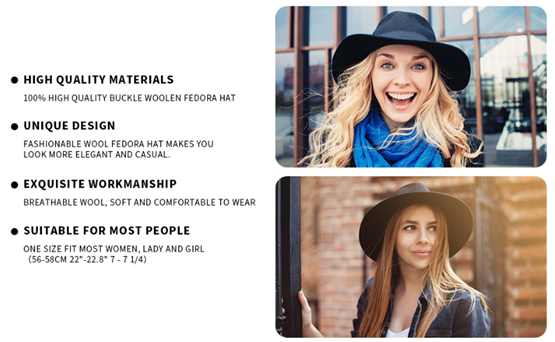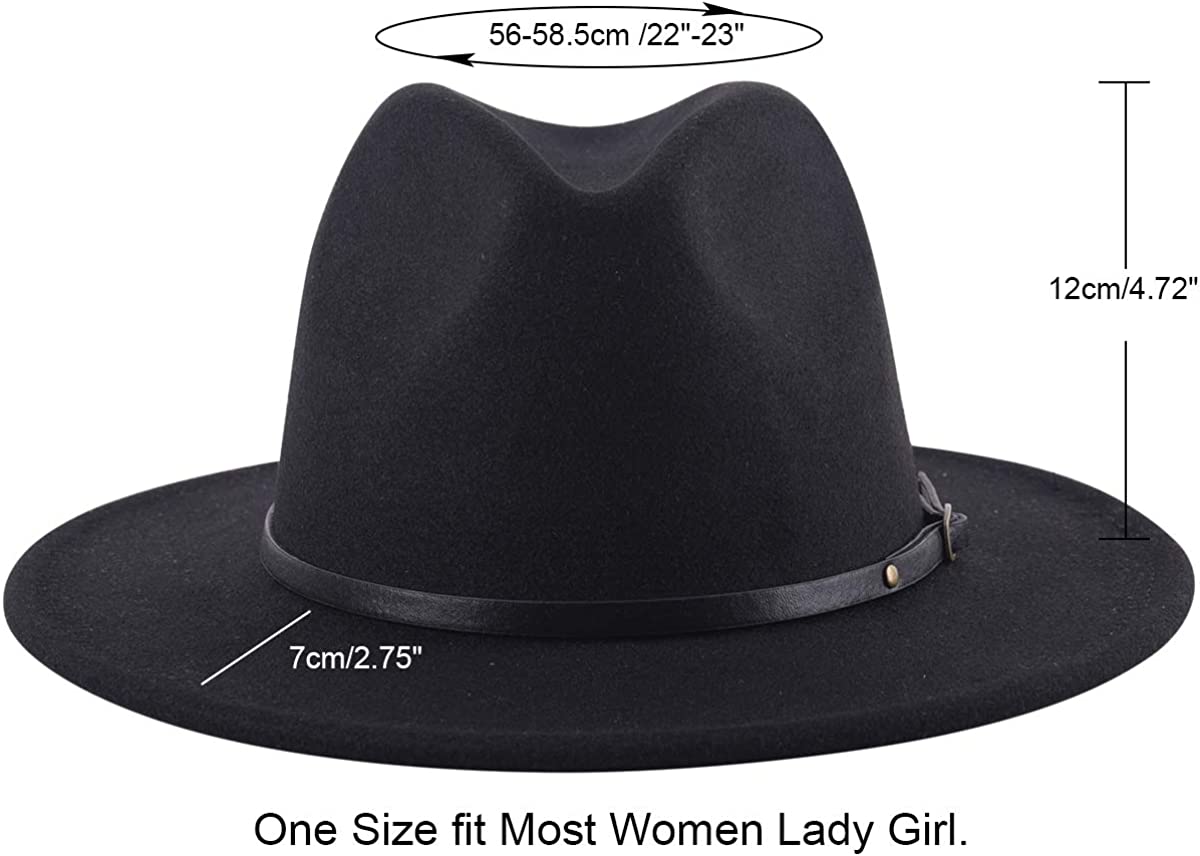 • Made from a soft and comfortable blend of 65% polyester and 35% wool, these fedora hats are perfect for any occasion. With a one-size-fits-all design and a hat circumference of 22.6 inches, they are sure to fit most women. Plus, the brim measures 2.9 inches, providing ample shade and protection from the sun.