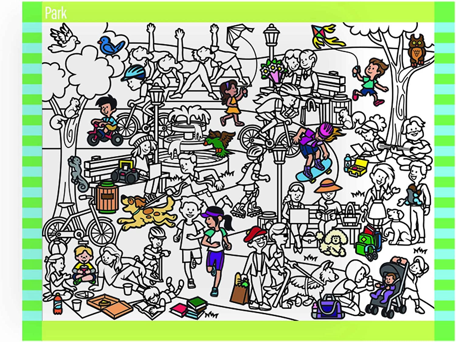 This fun pad is a seek-and-find game, a coloring pad, and a sticker pad all rolled into one! Match more than 400 full-color stickers to hidden objects on 14 town-themed pages, then color in the detailed scenes with pencils, markers, or crayons to create one-of-a-kind pictures. Sticker pages are color-coded and labeled to match scenes. The detail-rich scenes include a farmers market, hospital, highways, park, school, airport, amusement park, restaurant, mall, museum, café, construction site, bus station, and firehouse. Perforated edges make it easy to remove sticker pages to match to scenes.