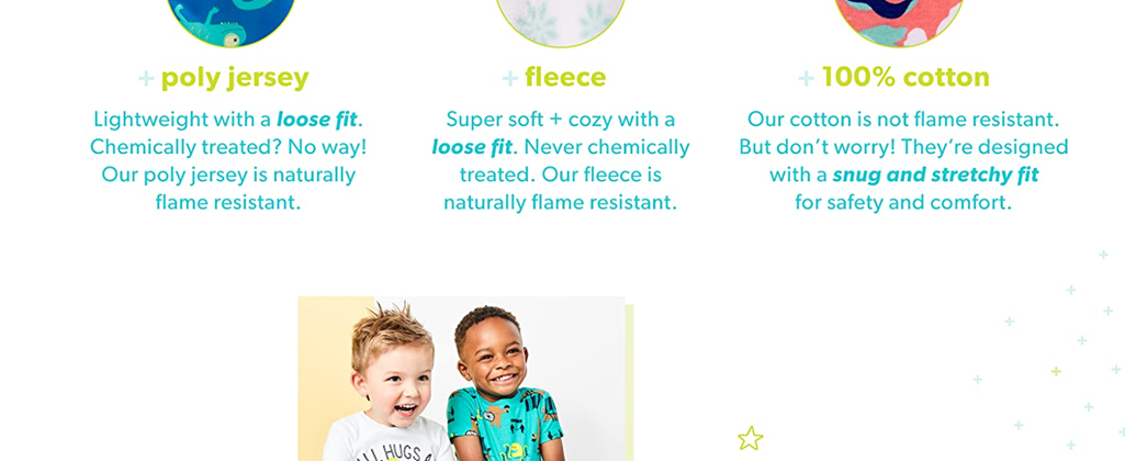 An Amazon brand - For safety, sleepwear should be either flame resistant or snug-fitting. This item has snug-fitting tops and loose fitting flame resistant bottoms
