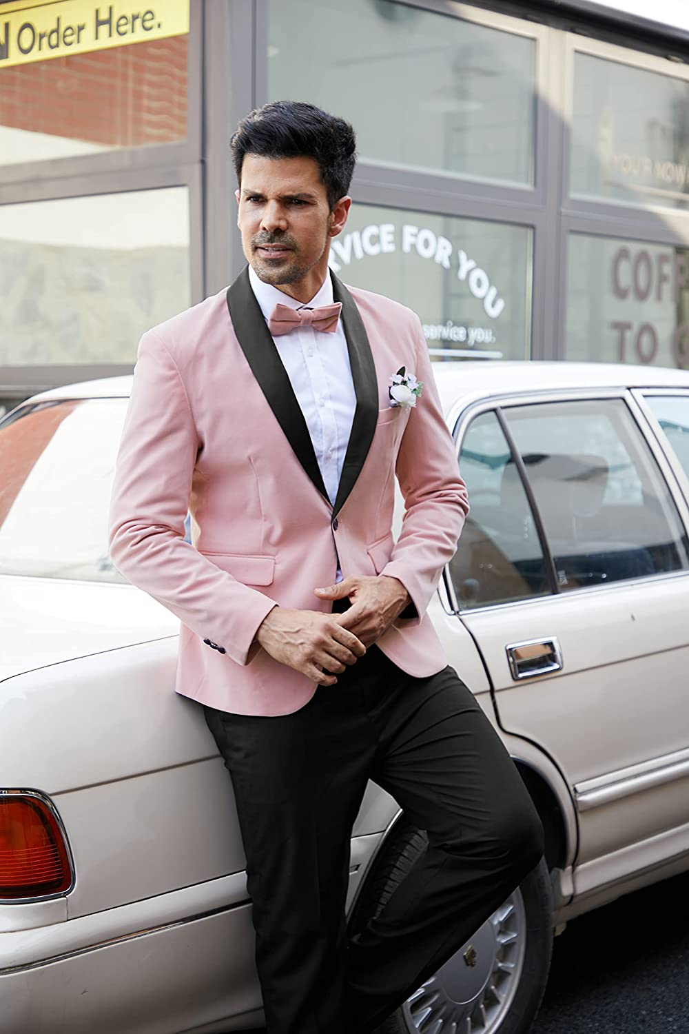MAGE MALE Men's 2 Piece Suit Peaked Lapel One Button Tuxedo Slim Fit Velvet Blazer Party Dinner Jacket & Pants