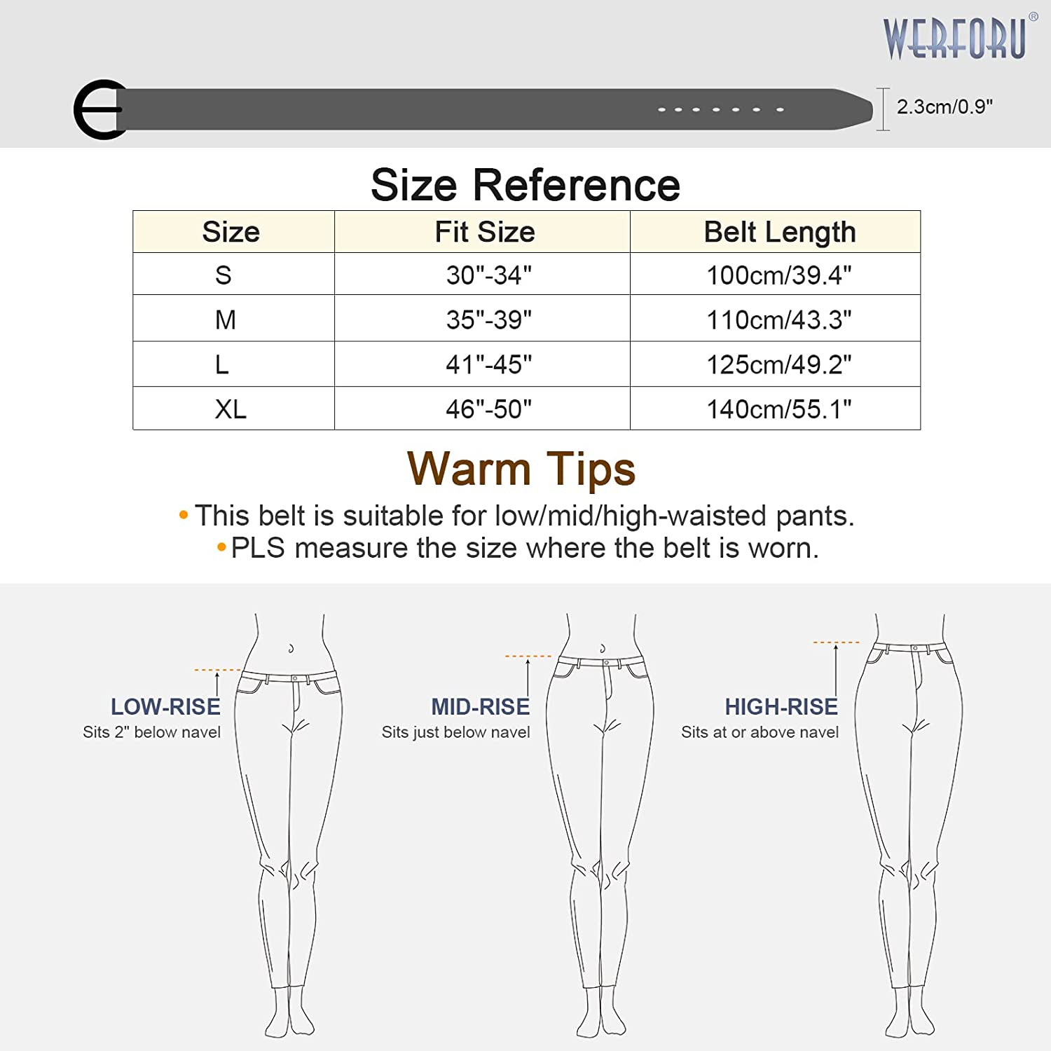 FLEXIBLE SIZE - The vintage women jeans belt fit for size 30"-34"/35"-39"/ 41"-45"/46"-50". The belt length are 39.4"/43.3"/49.2"/55.1". We enclosed a puncher in the package for you to trim the suitable size if the the pants belt is too long.