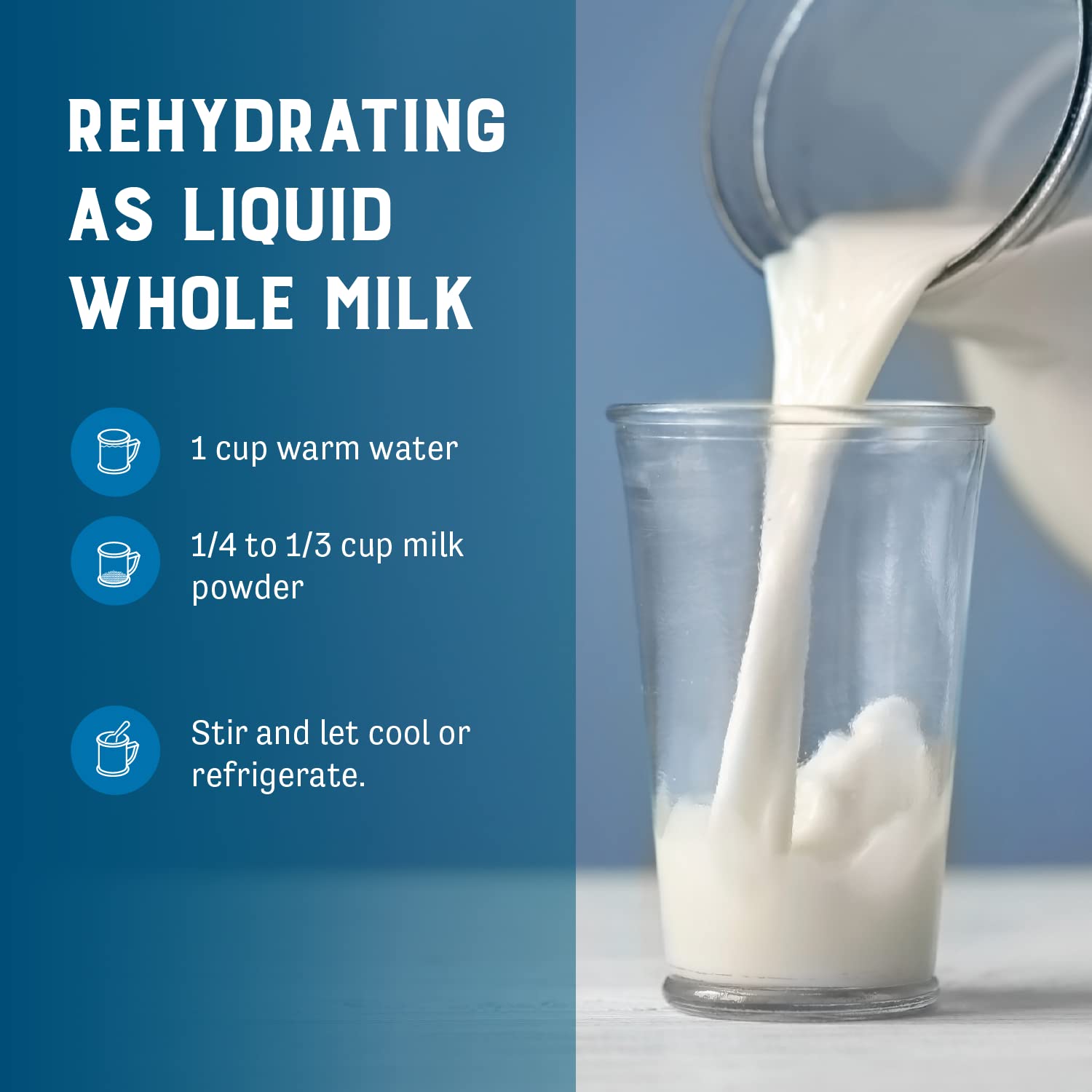 Ready For Your Recipes - Nothing artificial here; just the purest form of milk you can find, dried and ready to use in your recipes; use as a substitute for liquid milk, combine 1 cup warm water with 1/4 to 1/3 cup dehydrated milk powder to make 1 cup of whole drinking milk