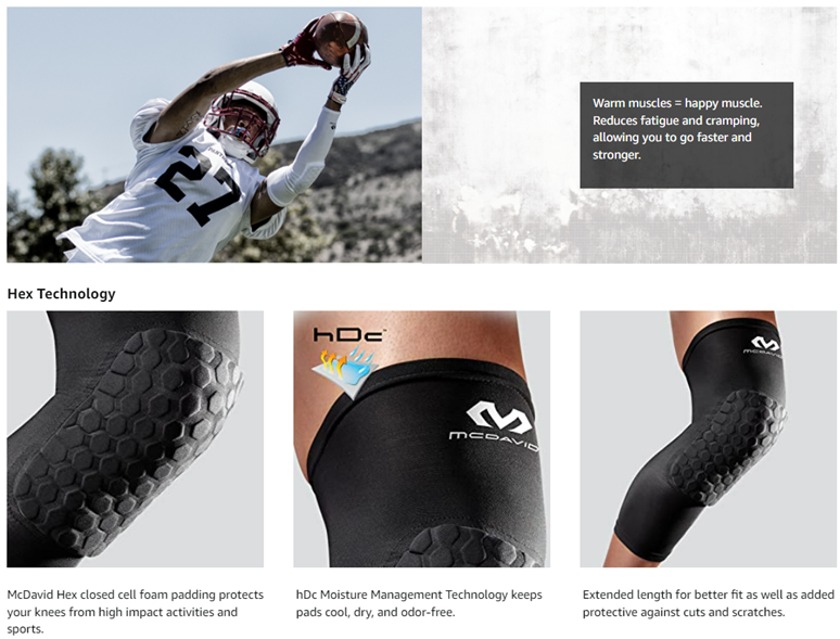 The support you need. McDavid's extended leg sleeves feature 9mm Hex technology and are a favorite among pro and collegiate players. Their extended length allows for better fit as well as added protection against cuts and scratches. McDavid's hDc Moisture Management Technology will keep you cool and dry all day or all game long.