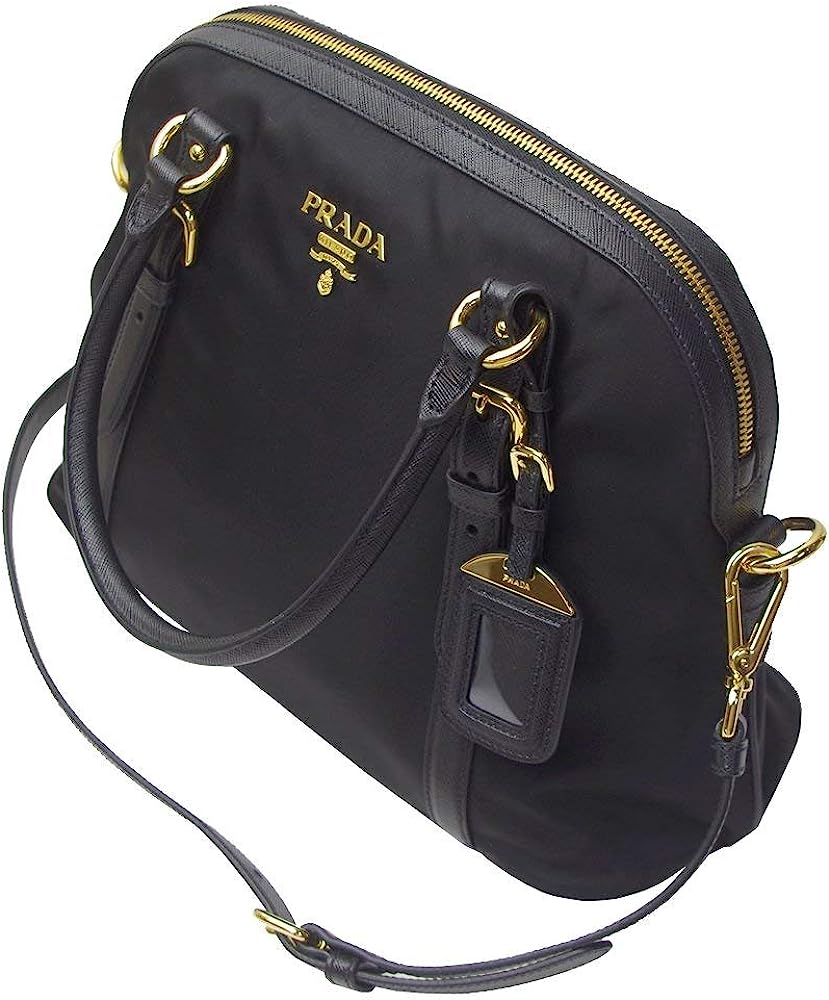 Prada Womens Tessuto Nylon Saffiano Leather Black Handbag 1BB013