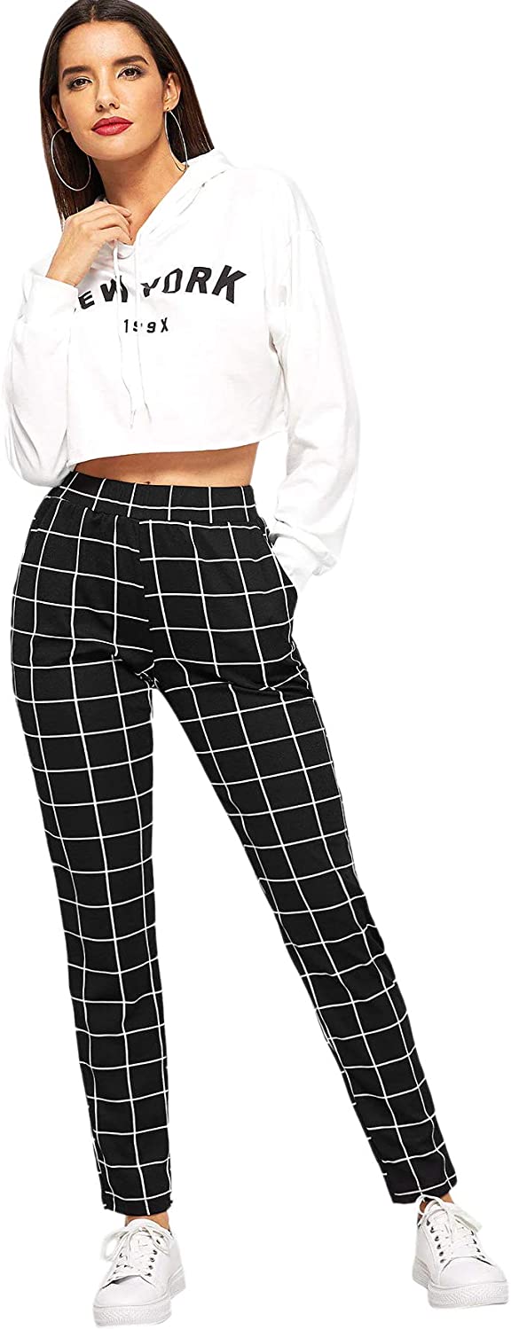 SweatyRocks Women's Pants Casual High Waist Skinny Leggings Stretchy Work Pants