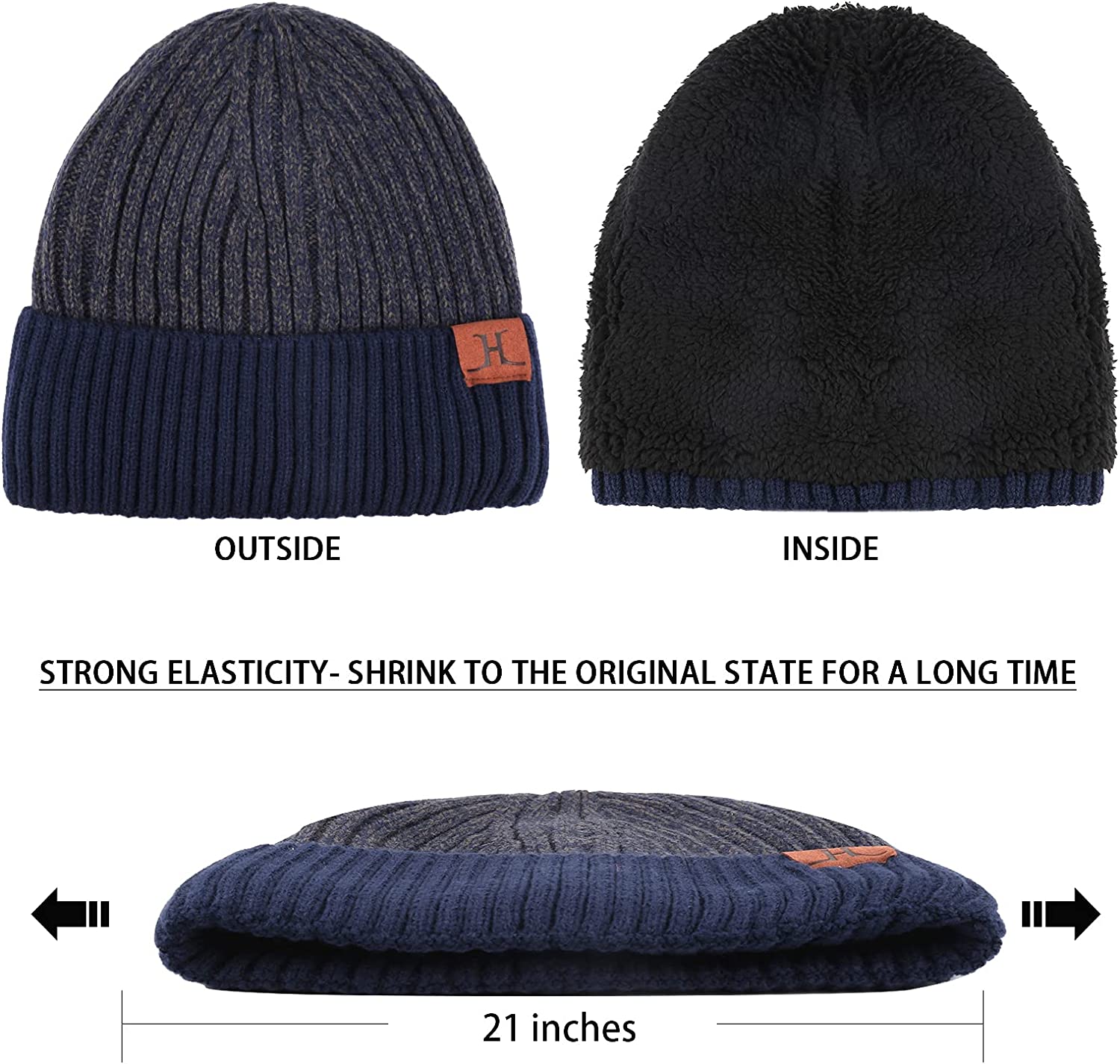 Men & Women Winter Knit Hat Beanie Long Scarf Touchscreen Gloves Set Skull Cap Neck Warmer Gloves Set with Fleece Lined