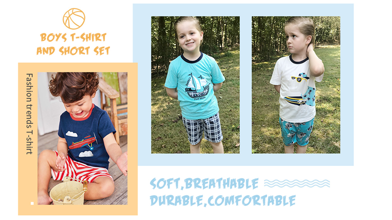 • Comfortable toddler outfit for boys, easy to slip on; is perfect fit as casual wear and summer travel.