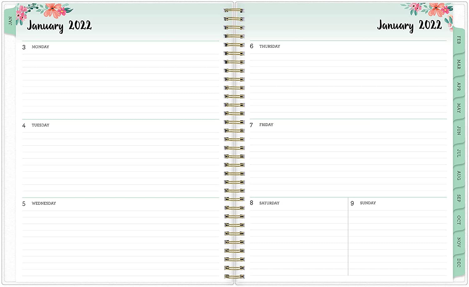 Bring order to your busy life with the Laurel Planner and its springtime motif to give your schedule a fresh start. Thick, premium-quality pages reduce ink bleed-through to ensure your writing stays legible. Two-page-per-week spread features ruled, daily blocks for easy handwriting. Monthly view per two-page spread includes a notes section for important projects. Monthly tabs are coated for durability. Durable, frosted flexible front cover keeps your pages protected throughout the entire year. Double-wire binding allows easy page-turning. Six bonus monthly views allow you to make easy yearly transitions. Planner also includes pages for yearly goals, contacts, reference calendars and extra notes pages. 12-month planner ranges from January to December.