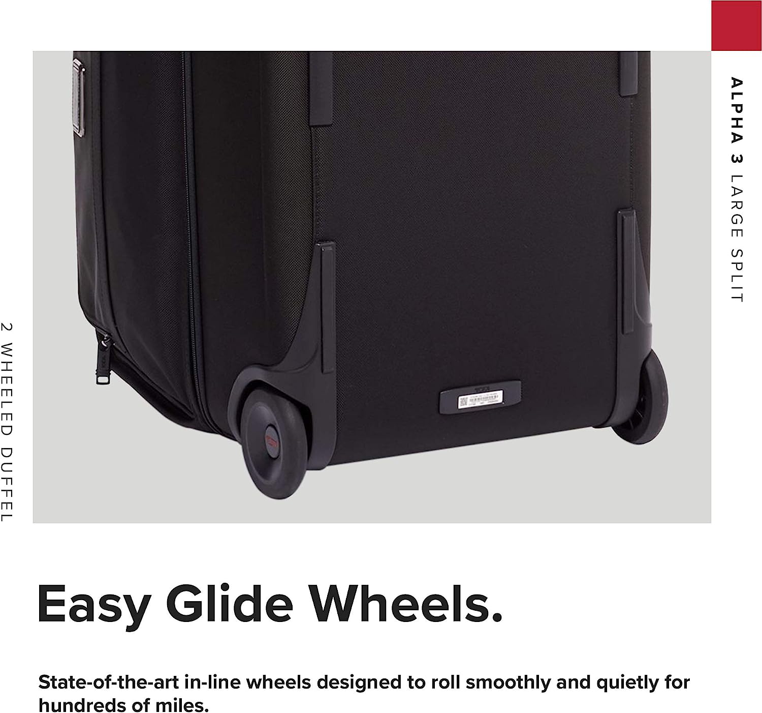TUMI Alpha 3 Large Split 2-Wheel Duffel Bag - With Quick Zip Interior - Rolling Luggage for Men and Women - Black