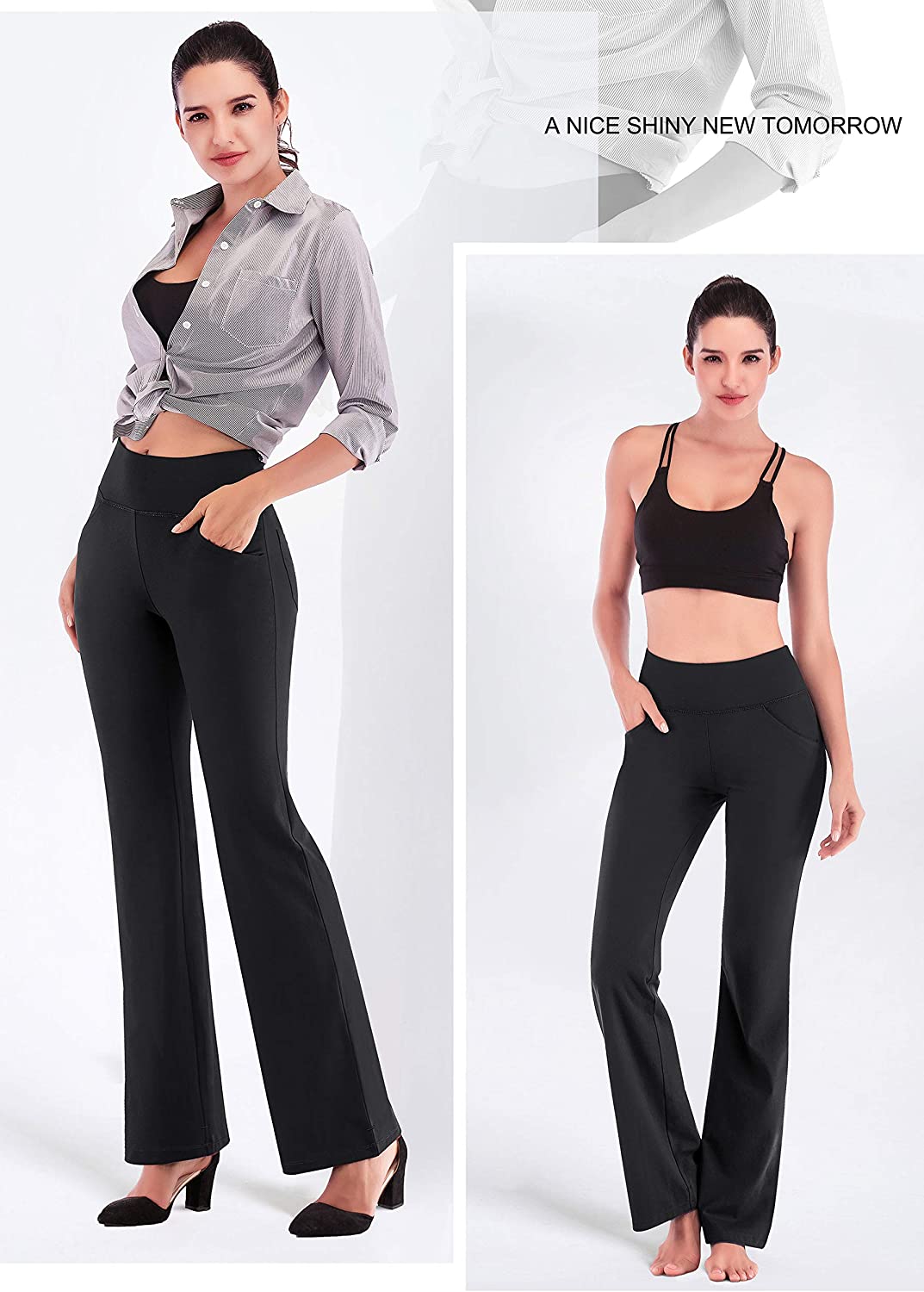 IUGA Bootcut Yoga Pants with Pockets for Women High Waist Workout Bootleg Pants Tummy Control, 4 Pockets Work Pants for Women
