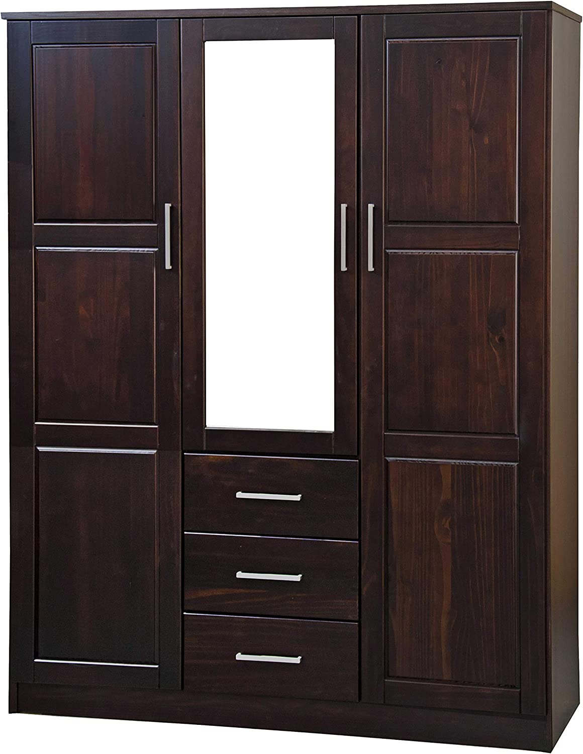 Palace Imports Cosmo Solid Wood 3-Door Wardrobe with Mirror and 3 Drawers, White. Additional Shelves Sold Separately.