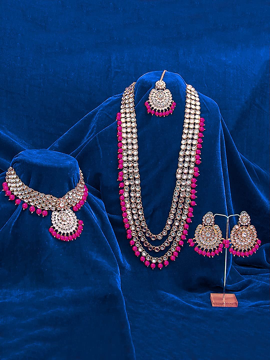 - DIMENSIONS(In Inches): Long Necklace Length - 26", Choker Necklace Length - 10" , Necklace Width - 3", Earring Height - 3", Earring Width - 2.25" , Mang Tika Length - 7" & Mang Tika Width - 2.25"