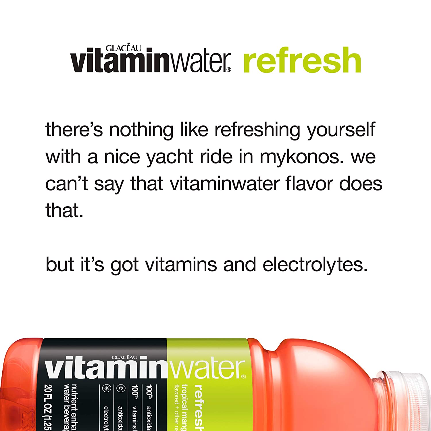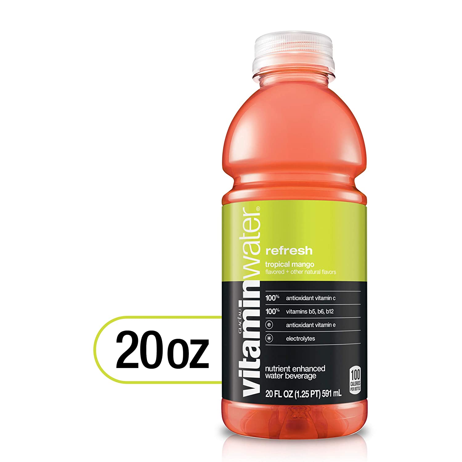 Vitaminwater Refresh, Tropical Mango Flavored, Electrolyte Enhanced Bottled Water with Vitamin b5, b6, b12, 20 Fl Oz (Pack of 12)