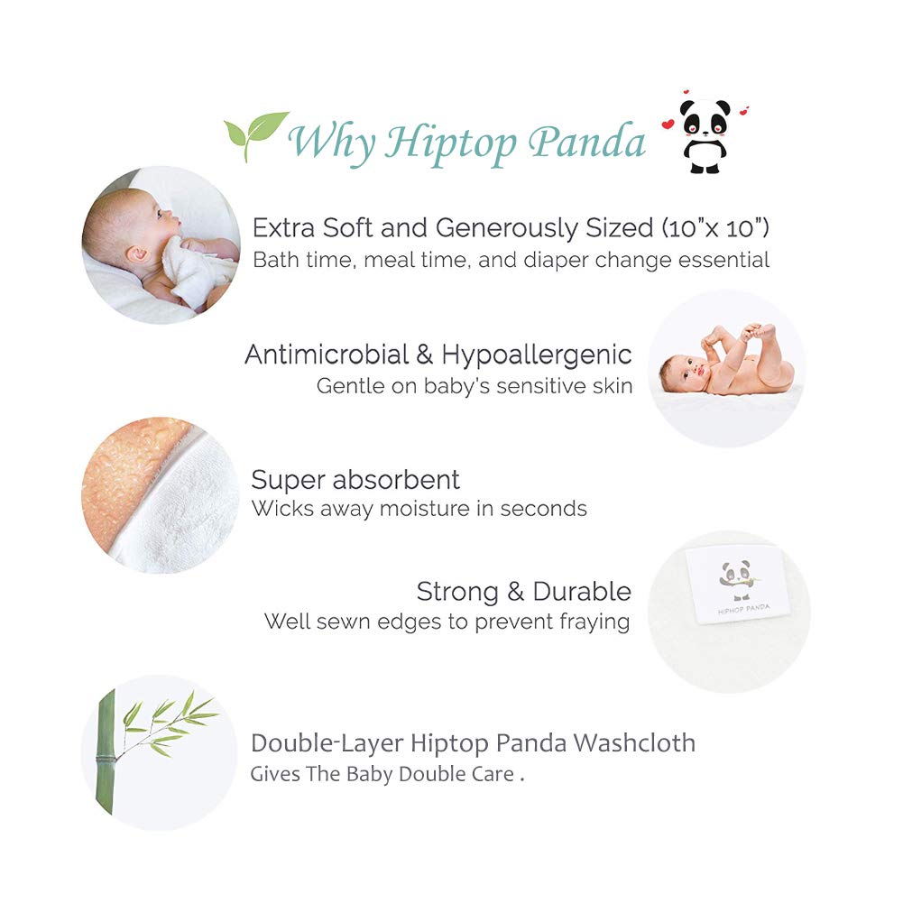 • 【TWO Promises】① The latest textile technology, double-layer materials.Ultra thick & absorbent baby towels. Excellent longevity makes them full reusable. ② HIPTOP PANDA Premium wash clothes. Ideal solution for babies's skin.