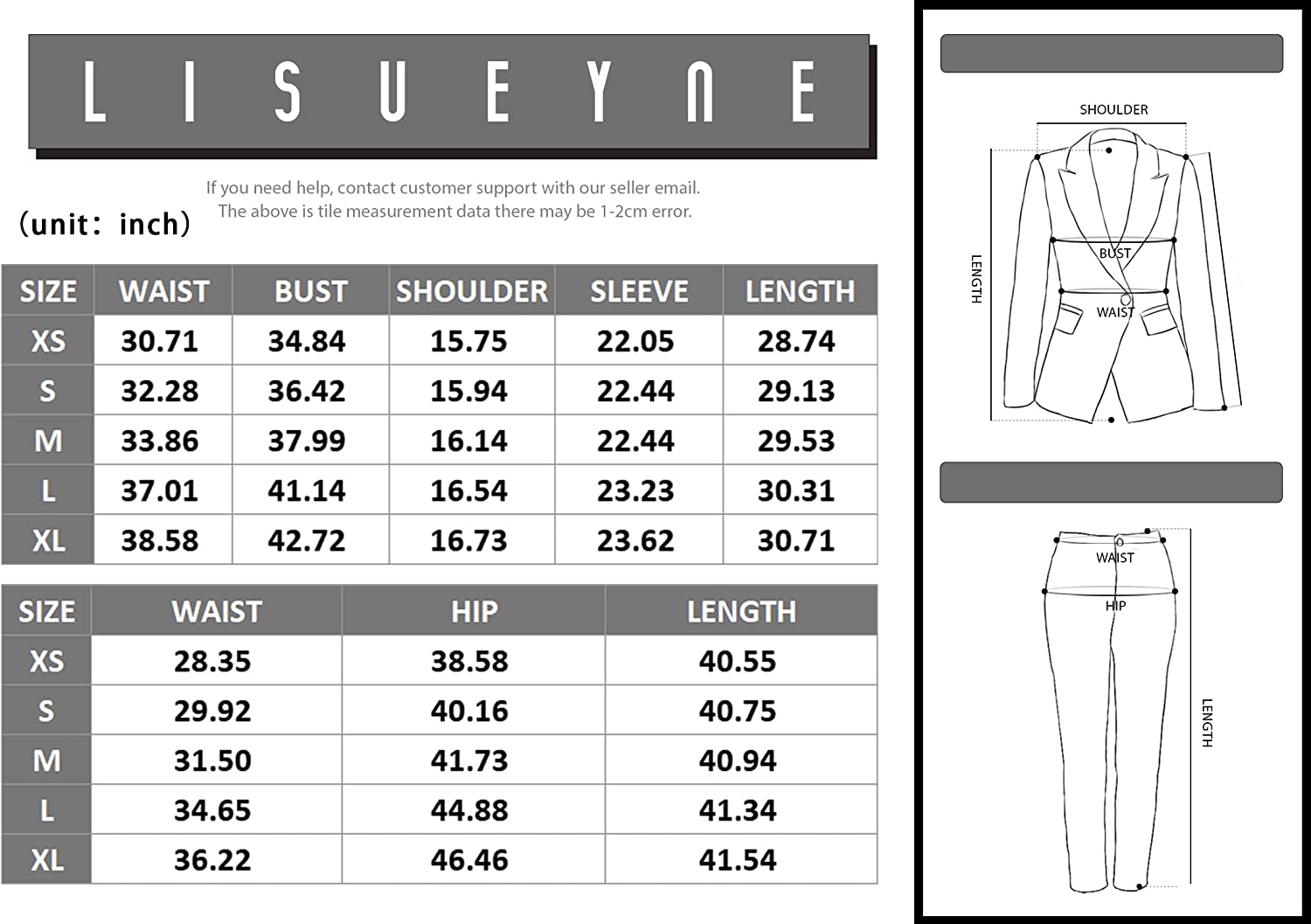LISUEYNE Women’s Two Pieces Blazer Office Lady Suit Set Work Blazer Jacket and Pant