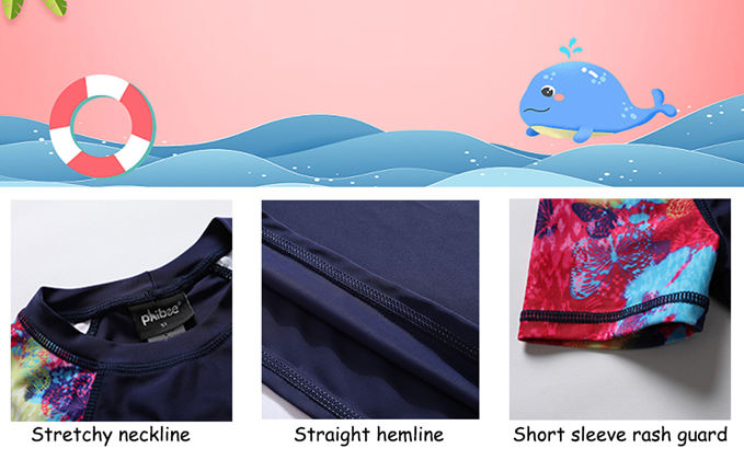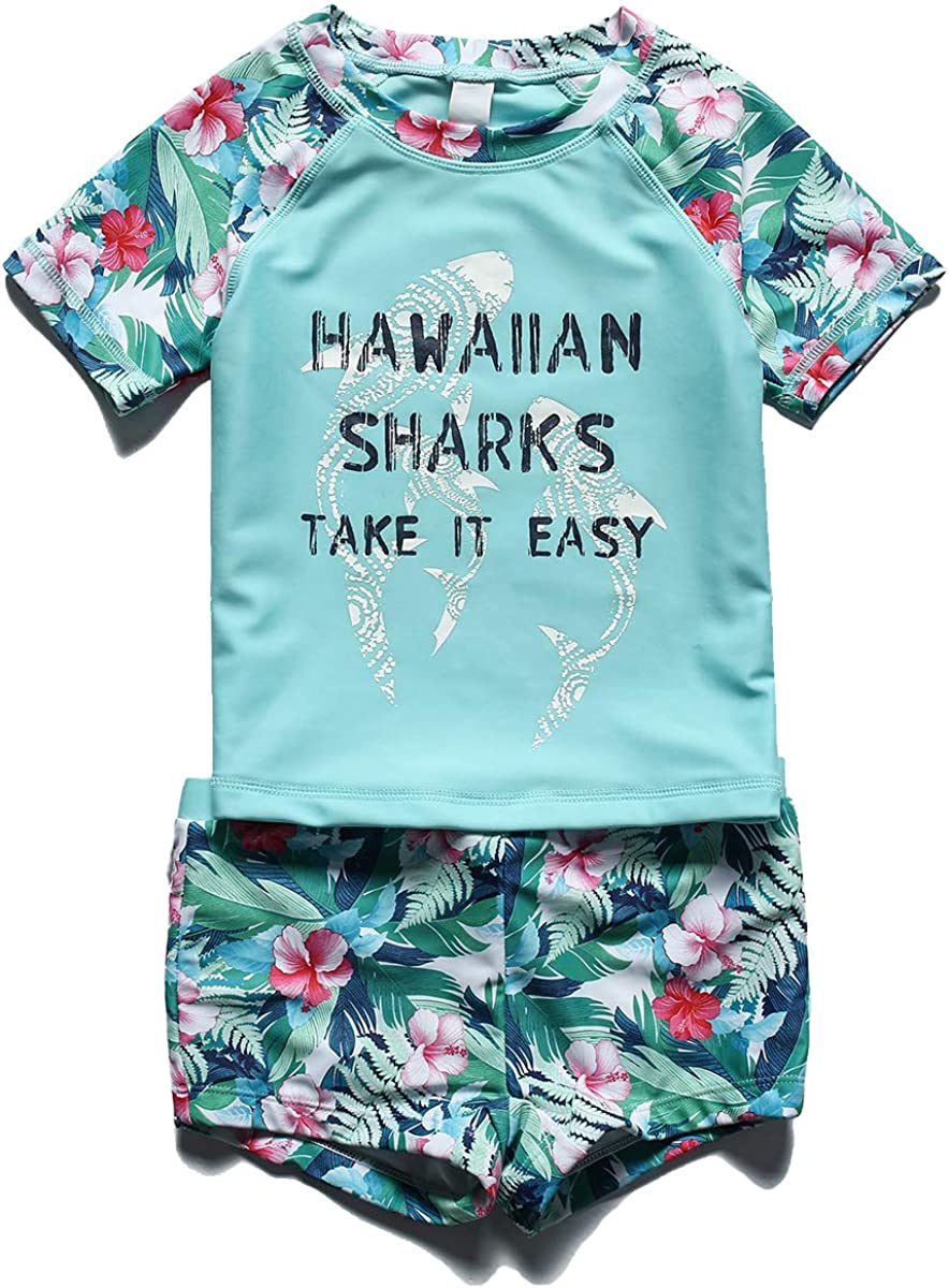PHIBEE Girls' Short Sleeve Rash Guard Set UPF 50+ Sun Protection Two-Piece Swimwear