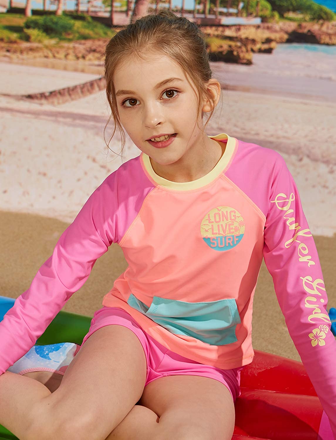 PHIBEE Girls' Rash Guard Set Long Sleeve UPF 50+ Sun Protection Two-Piece Swimwear