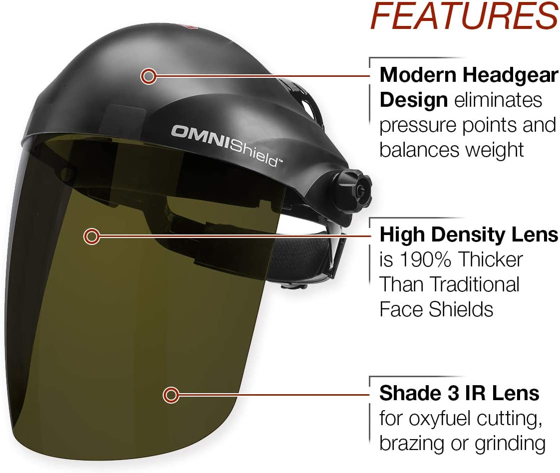 VERSATILITY - The Omni shield headpiece is compatible with multiple lens types as well as hard hat adapters for use in industrial environments.