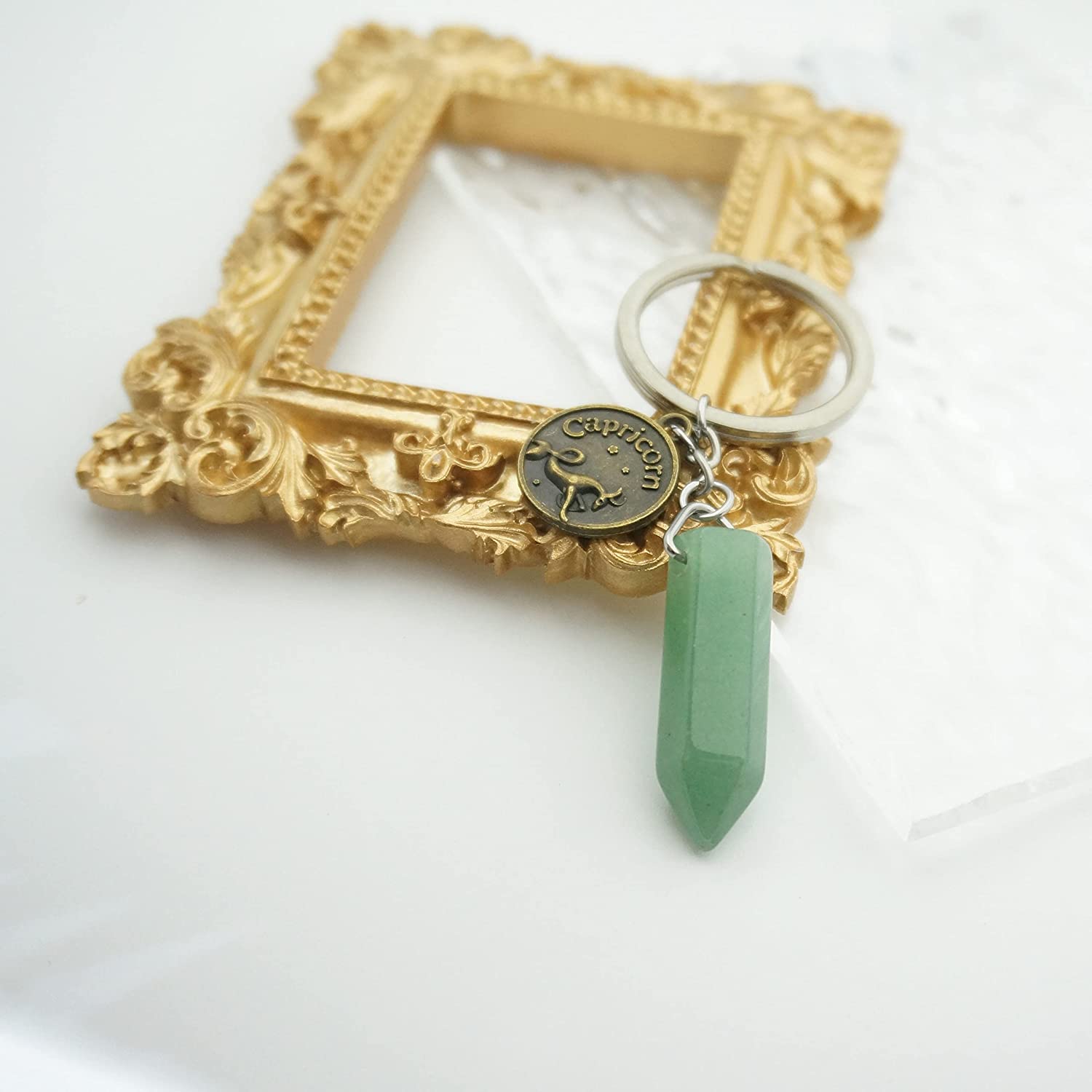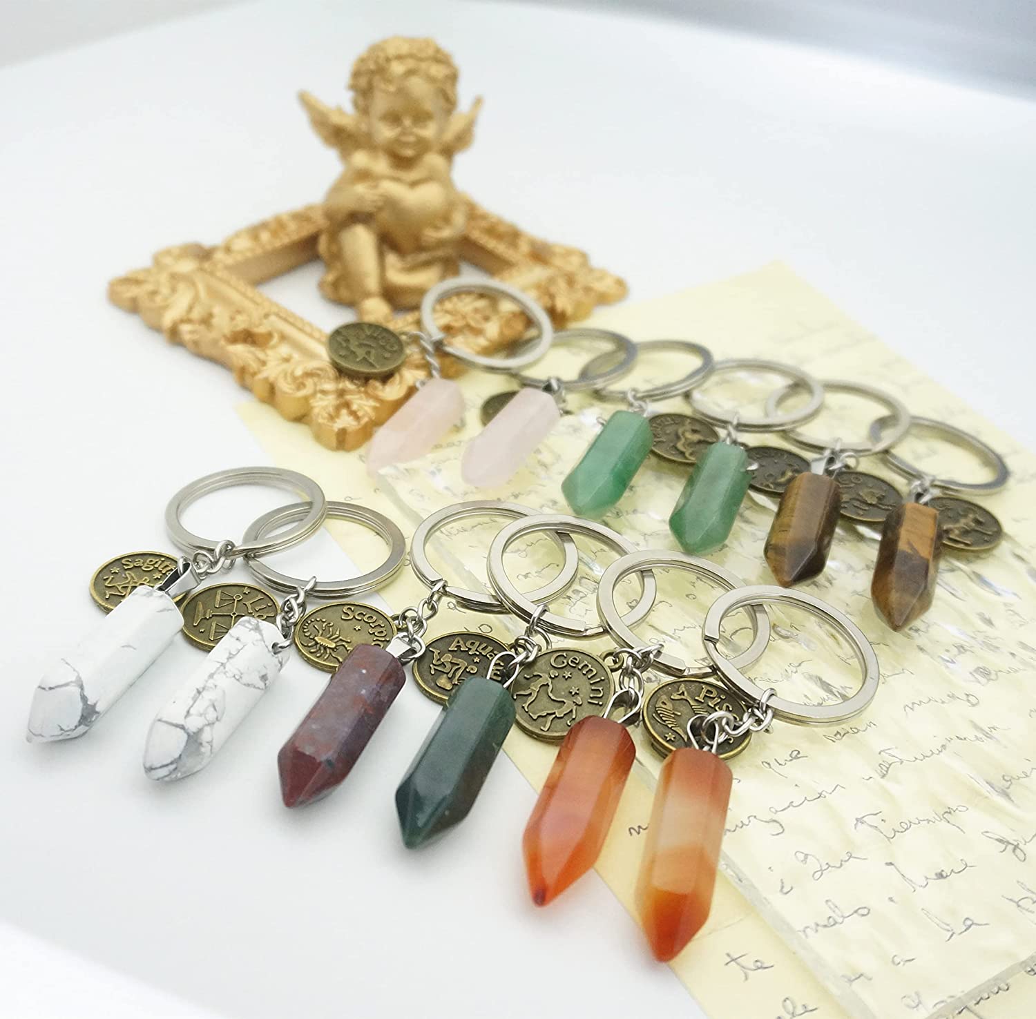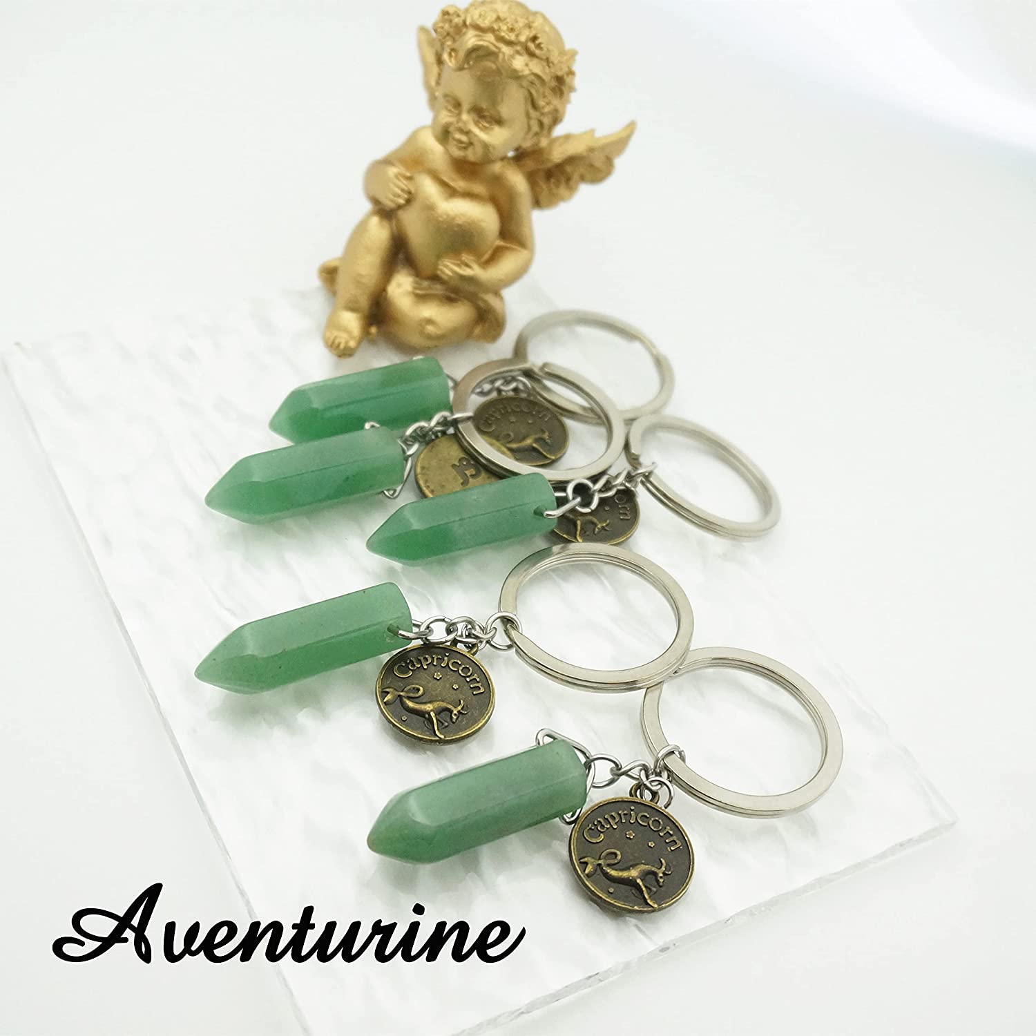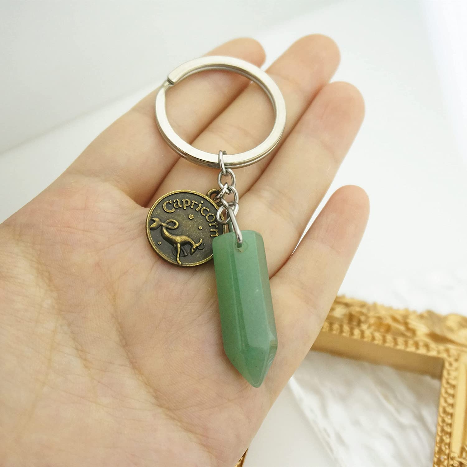 ZUOPIPI Zodiac Crystal Stone Keychain Natural Rose Stone/Red Agate/Aventurine Healing Crystal Keychain