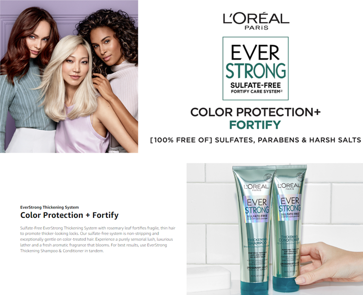 • Fortify Care System- This L'Oreal Paris EverStrong Thickening Hair kit includes Shampoo and Conditioner
