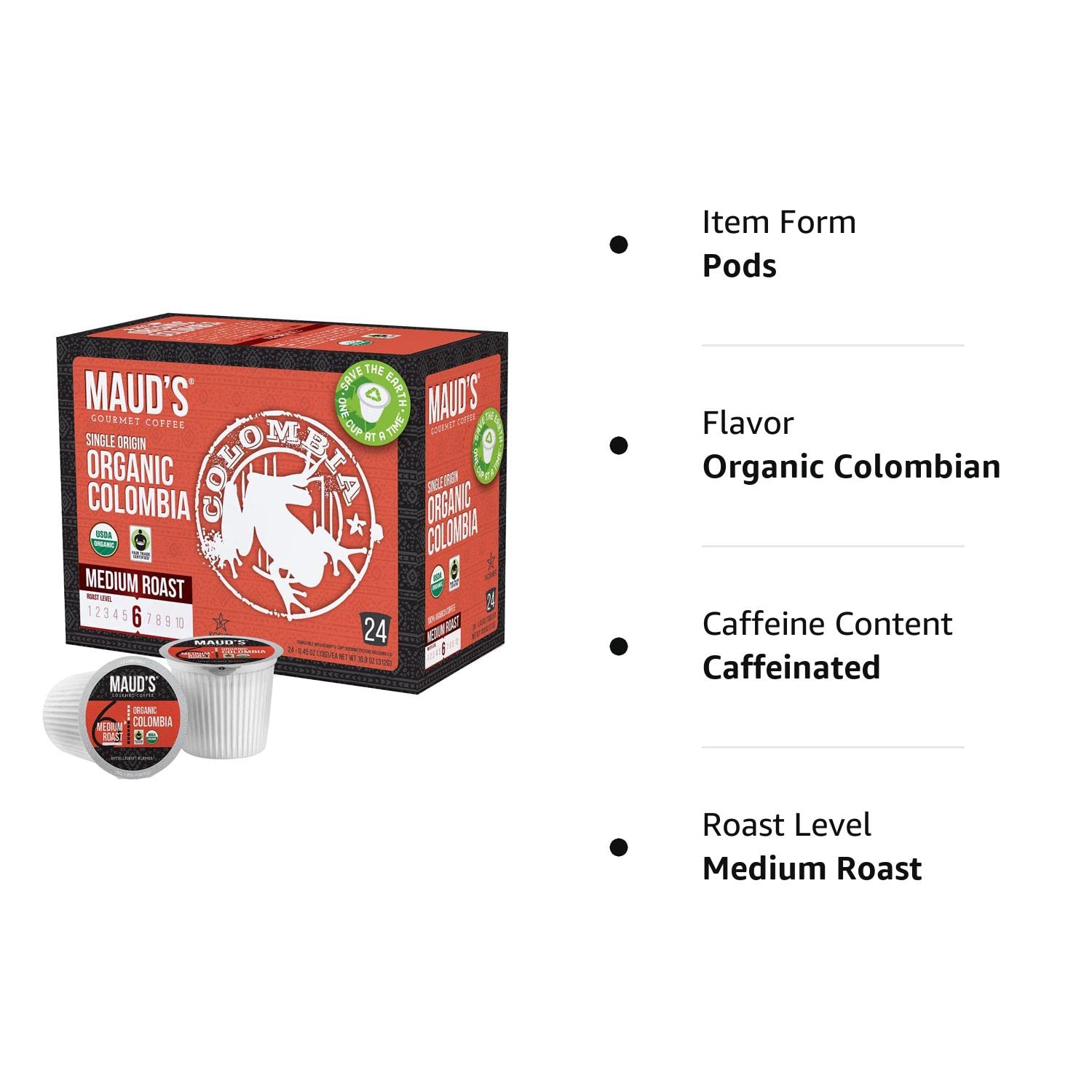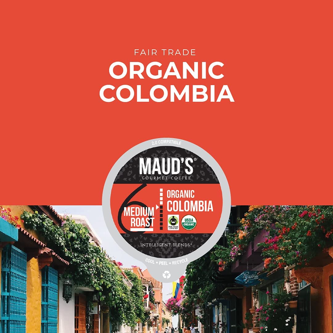 Maud's Organic Colombian Coffee (Organic Medium Roast Coffee), 24ct. Solar Energy Produced Recyclable Single Serve Fair Trade Single Origin Organic Coffee Pods - 100% Arabica Coffee, KCup Compatib
