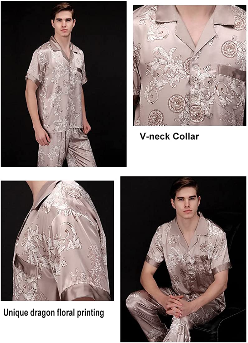 • Materials:Silk stain,mens pajamas set is made of lightweight silk like satin, soft,breathable and skin-friendly, help you have a sound sleep.