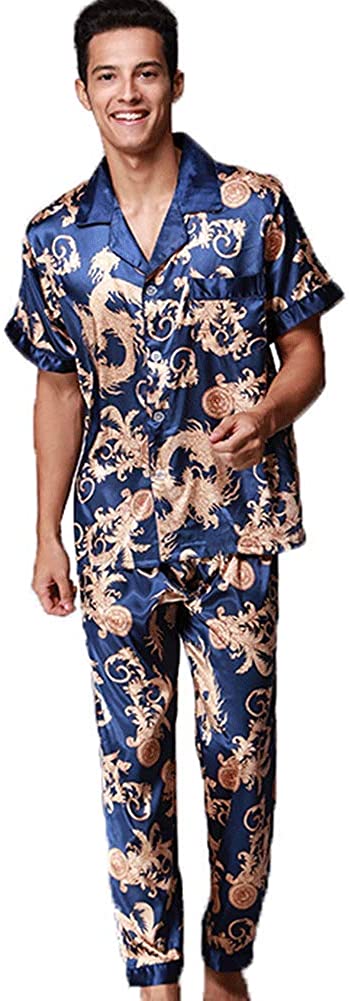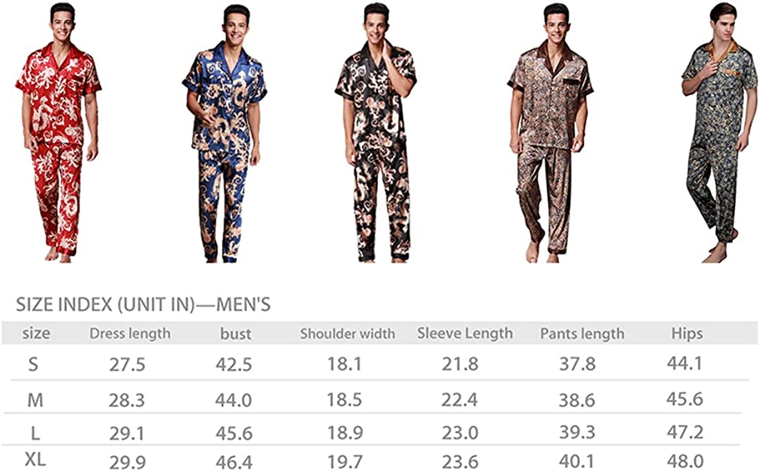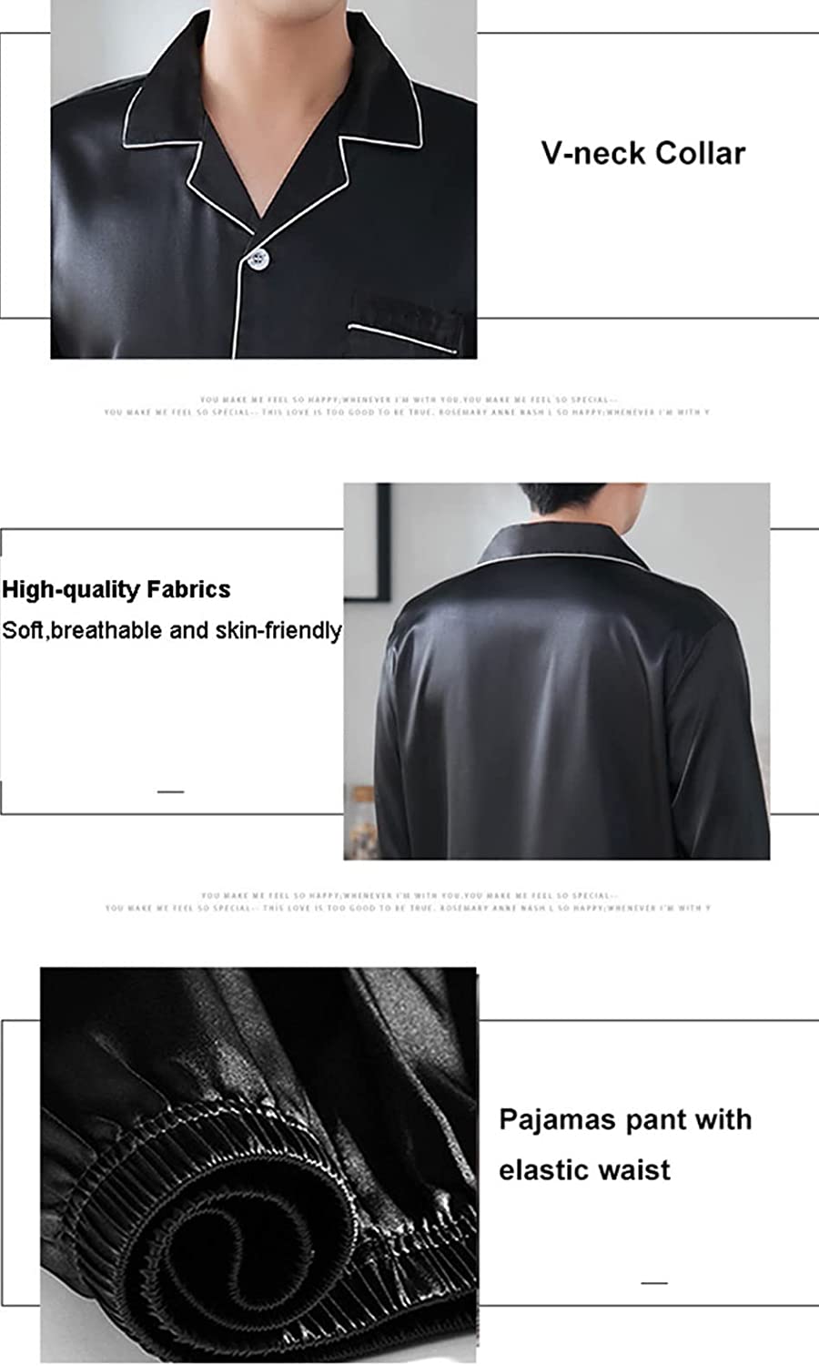 • Gift:The satin pj set is a perfect gift choice for your dad, husband, son, or friend on birthday,Christmas Day,New Year,Valentine's Day. Fit for SleepWear,pajama party,fathers day,indoor, living room, bedroom, hotel, vocation, travel, and daily sleepwear.