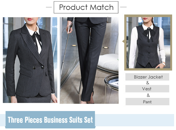 • 【Top】-Fashion notched lapel,and thick shoulder pads.Exquisite and stick double closure fasten the suit.Practical front pockets with covered placket.Simple long sleeve cuffs design,unique strip pattern design,waisted,regular and neat blazer hem,single-breasted button vest.