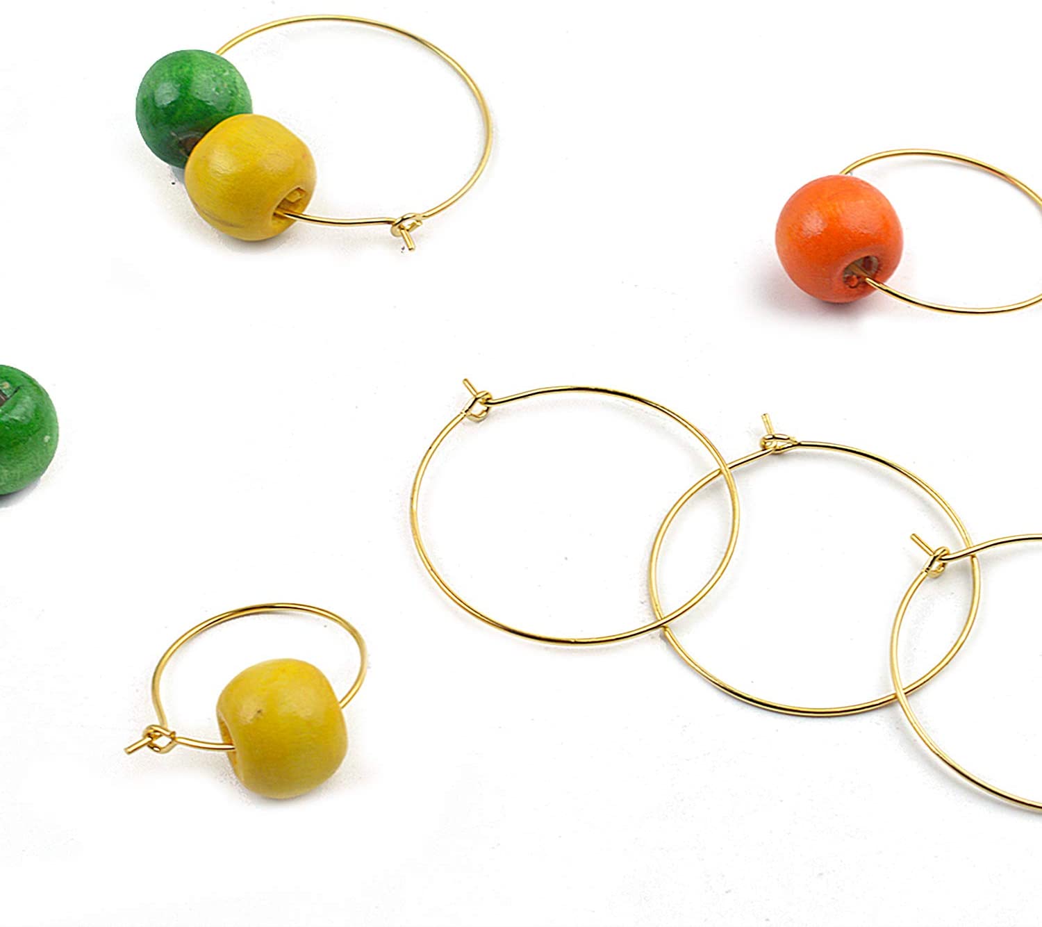 Make your own earrings or wine glass charms with these gold plated hoops.