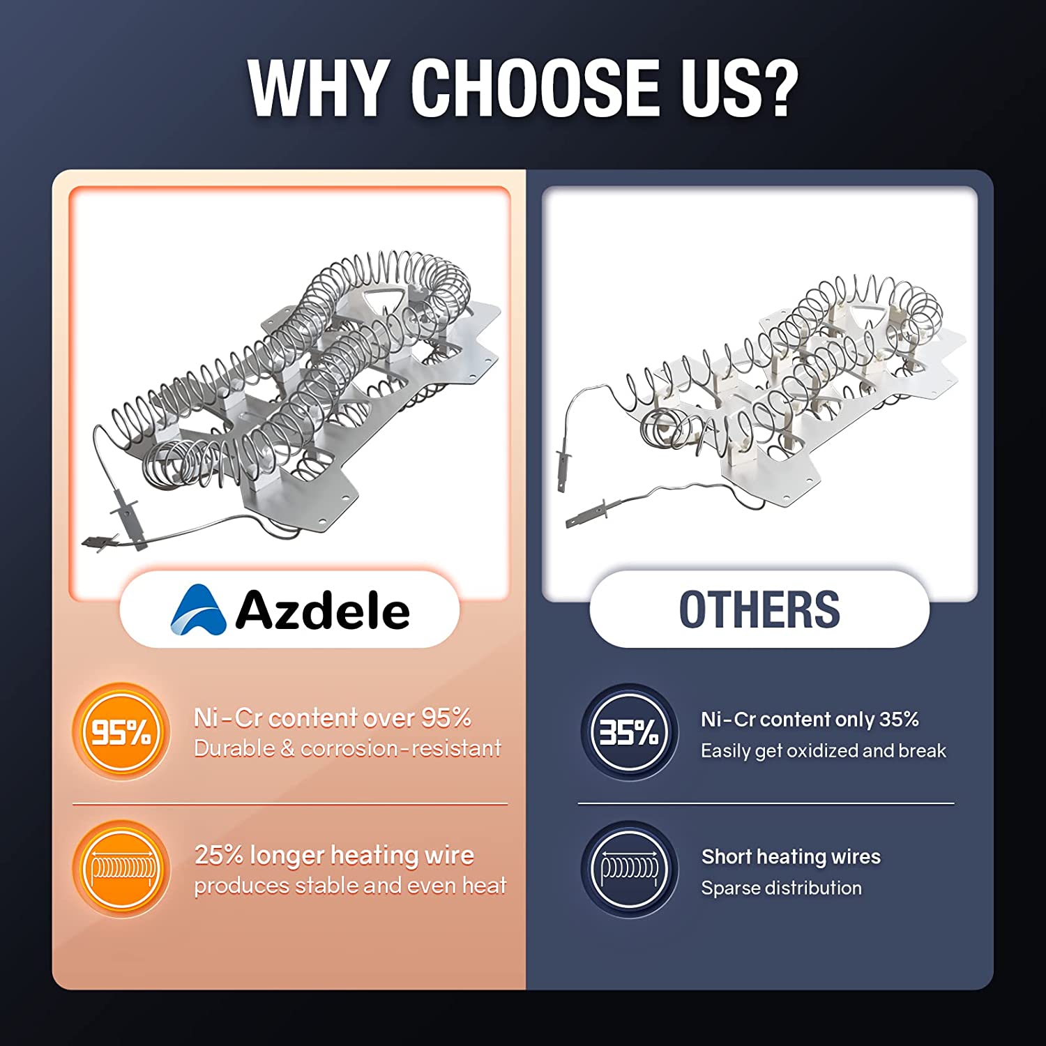 - Compatible Dryer Models: Azdele Samsung dryer heating element fits for dv42h5000ew/a3,dv45h7000ew/a2 dv48h7400ew/a2,dv42h5200ep/a3,dv40j3000ew/a2,dv42h5200ew/a3,dve50m7450w/a3,dv448aep/xaa,dv5451aew/xaa,dv42h5000es,dv331aer/xaa,dv5471aep/xaa,dv56h9000ep/a2,dv448aew/xaa,dv331aew/xaa,dv419aew/xaa,dv50f9a6evw/a2,dv50f9a7evp/a2,dv361ewbewr/a3,dv393etpawr/a1,dv407aew/xaa,dv45h7000ep/a3, etc. It's also suitable for brands like LG, Maytag, Sears, Kenmore, Kitchen-Aid and Roper.