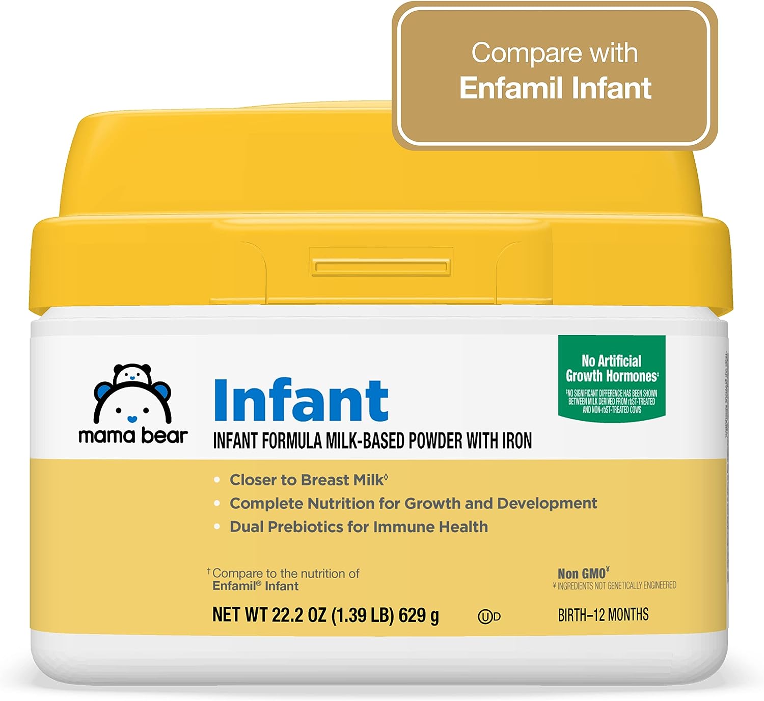 Amazon Brand - Mama Bear Infant Milk-Based Baby Formula Powder with Iron, Dual Prebiotics, Omega 3 DHA and Choline, Brain, Growth, Immunity, 22.2 Ounce (Pack of 1)